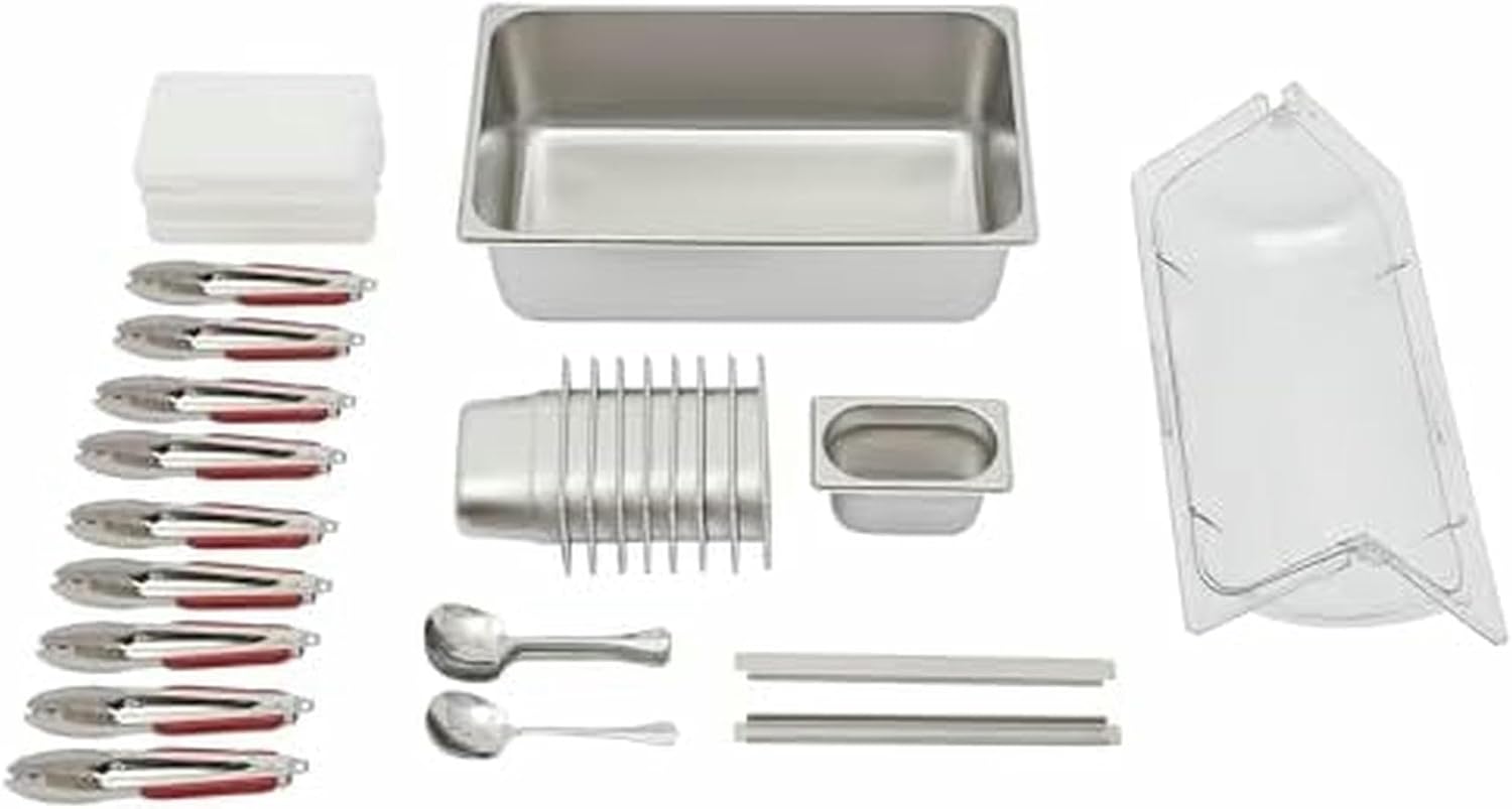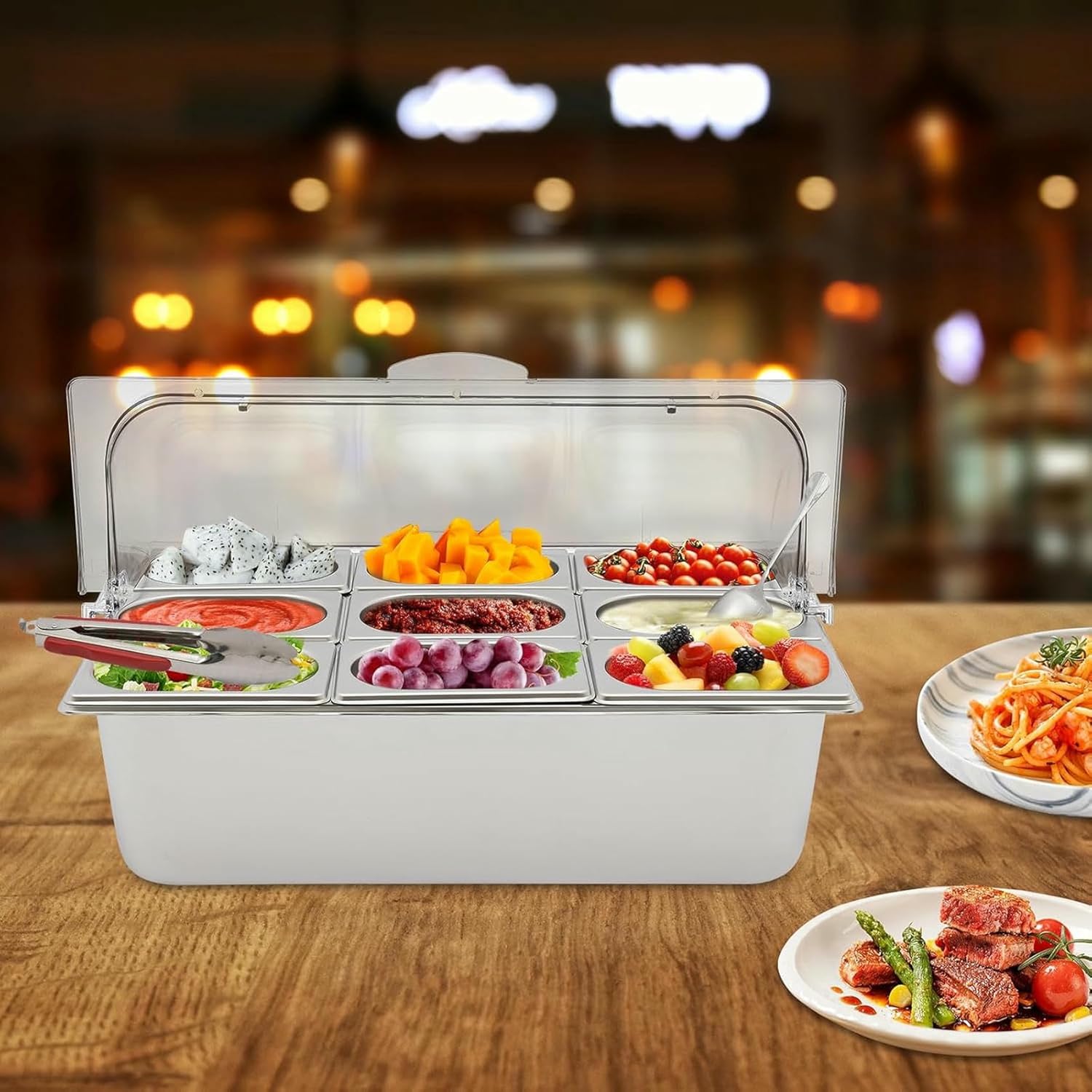 Simple and modern silver -colored appearance and transparent lid fit with all types of decorative styles, not only a practical food container, but also a decorative piece on the table.1 set for salad bar, buffet station, food serving container, food service display with lid, cold dishes, buffet servant for home, hotel, shopping center
