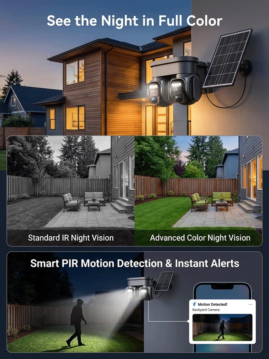| BuiltIn Media | Charging Cable, Dual Lens Security Camera, Instruction Manual, Mounting Screw, Power Adapter |