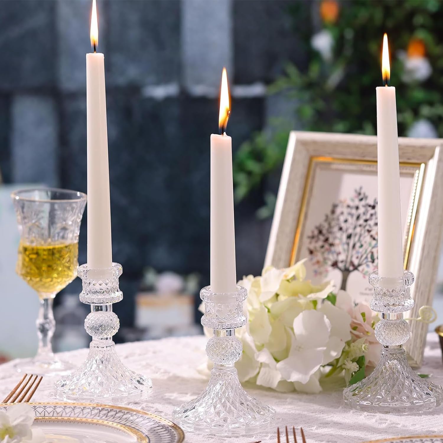 6pcs Candlestick Holders, Taper Candle Holders Glass, Candle Pillar Stands for Table Mantel Wedding Housewarming Gift Home Decoration