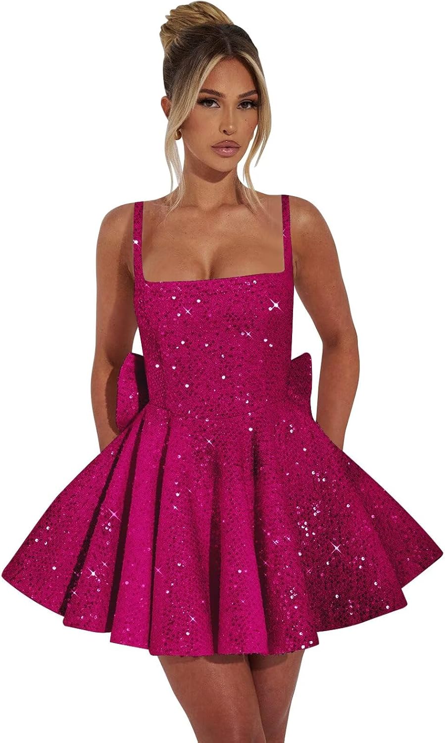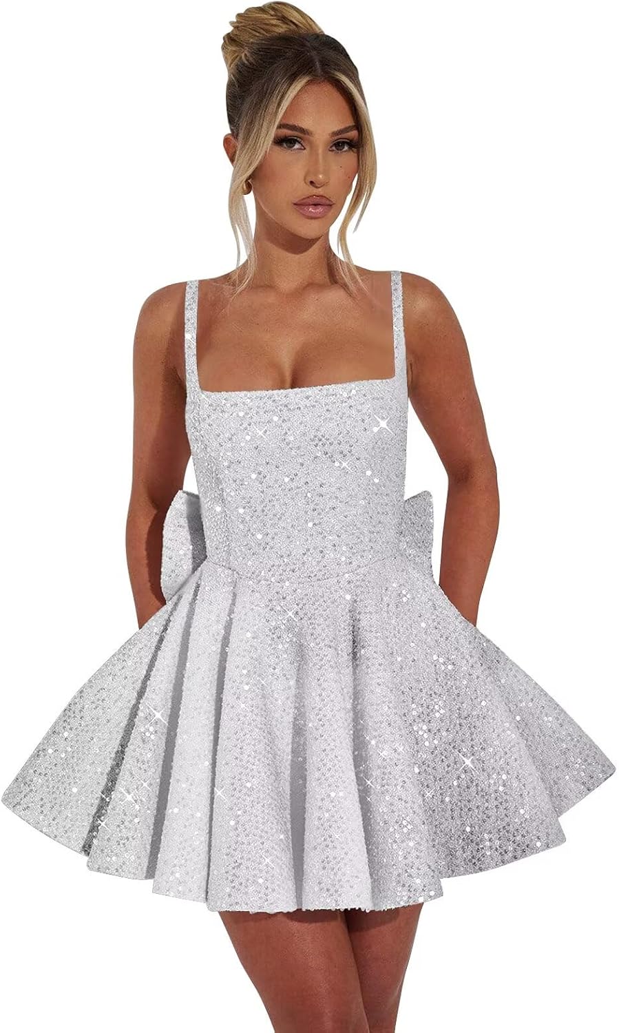 We sincerely hope you can find a dress that satisfies you and shows your beauty! Full range of sizes, no matter what shape you are, you can find a size that suits you. And, there are more materials, colors, lengths and types of dresses in our store. Product Description: Fabric: Sequin Dresses Length: Above Knee Length Back Design: Lace up Back Suitable for: Teens and Women Customized Services: Customization Is Available and Free. Please fill in the following format, provide all your exact sizes to us after you place an order. 1.Bust = ___inches. 2.Waist= ___inches. 3.Hips = ___inches. 4.Heels' Height=___inches. 5.Your height(with head)=___inches. Note: 1.The real color of the item may be slightly different from the pictures caused by many factors such as brightness of your monitor and light brightness. 2.Please allow 1-3cm differs due to manual measurement.