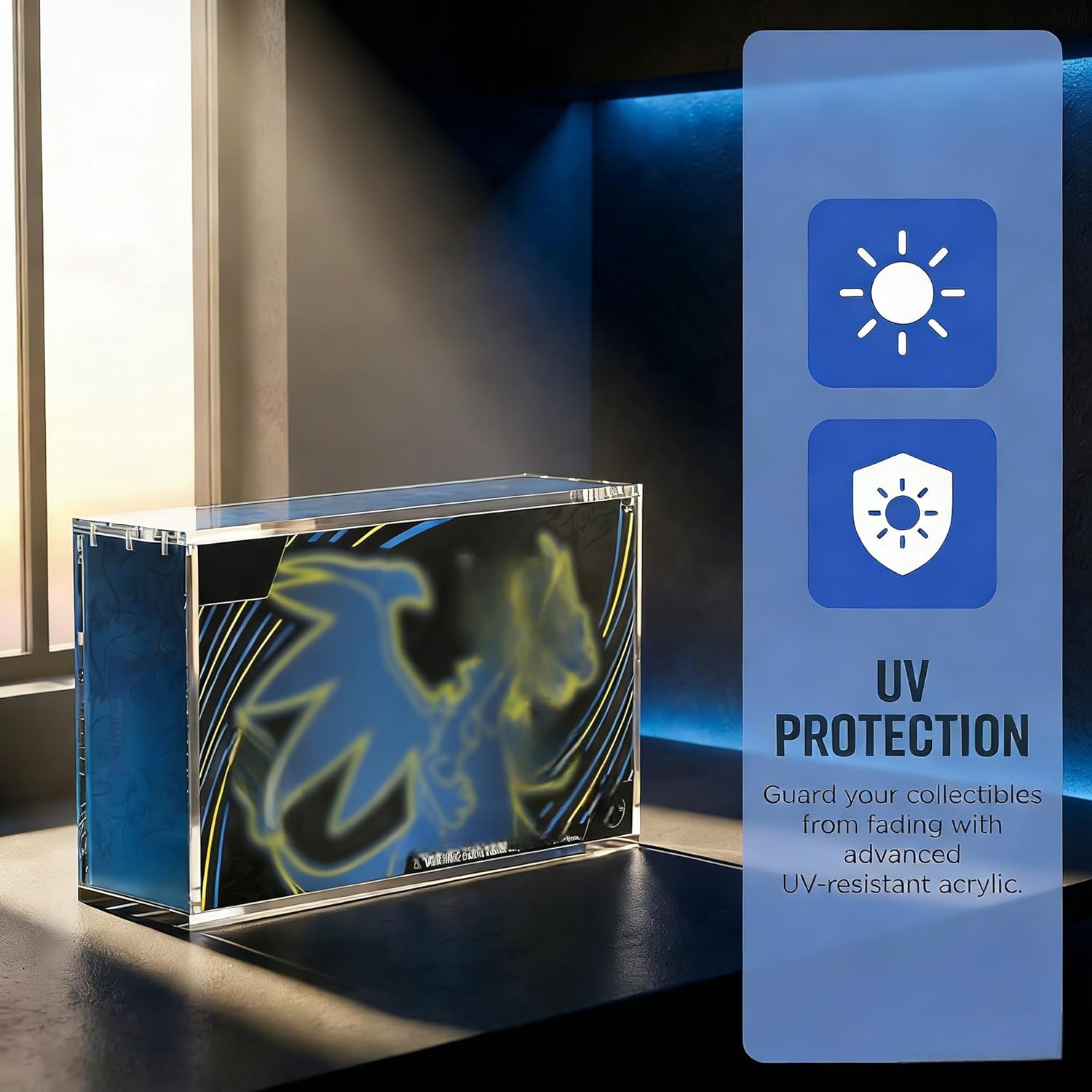 Showcase and protect your most prized Pokémon collections with our premium acrylic display case, specially engineered for the Mega Charizard X ex Ultra-Premium Collection and 151 Ultra-Premium Collection boxes. This is the ultimate storage solution for serious collectors who demand safety, clarity, and a polished display. Our display case provides reliable defense against UV light, dust, moisture, and daily wear, effectively preventing fading and preserving your box’s original condition. The sturdy, thick acrylic structure and strong magnetic closure ensure long-lasting durability, shielding your valuable Charizard UPC from scratches, dents, and accidental damage. Designed for a precise, snug fit, this case keeps your collection securely in place without unnecessary gaps or movement. The crystal-clear material delivers flawless visibility, highlighting every detail of your Mega Charizard X Ultra-Premium Collection while maintaining optimal clarity. Whether you’re displaying your collection at home, in an office, or building a long-term investment-grade set, this acrylic display case combines functionality, protection, and premium aesthetics. Safeguard your valuables and elevate your display with the perfect protective case for your UPC boxes.