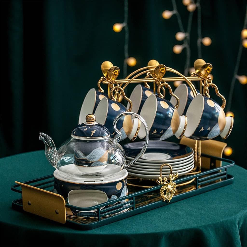 Simple and luxurious, ingeniousUse with a tray, the appearance, easy storageIt can be used as a cooling kettle or heated zhu'chaBuilt-in filter design in the mouth of the pot, clever hook, easy to filter teaBe responsible for the appearance of guests at home, prepare a set of good-looking itemsMaterial: glass, ceramic, metalPackage content: sunrise flower tea set (6 cups, saucers, 6 spoons, 1 pot, 1 cup holder, 1 tray)Size: as shownPackage includes: water bottle * 1 set (does not include other demonstration items)Tips:1. Please allow 2-3cm error due to manual measurement.2. Due to different monitors, the color may be different, please understand.