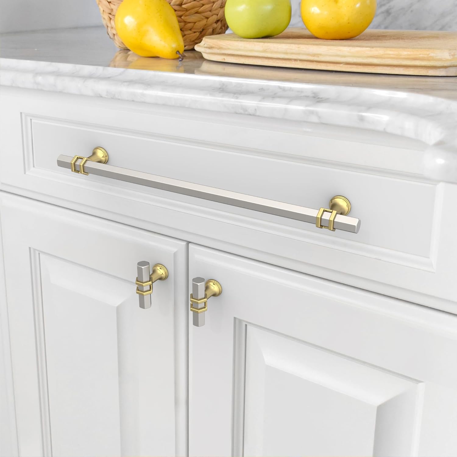 Asidrama 10 Pack 10 Inch(254mm) Brushed Satin Nickel and Gold Kitchen Cabinet Handles, Cabinet Pulls Kitchen Cabinet Hardware for Cupboard Drawer Pulls