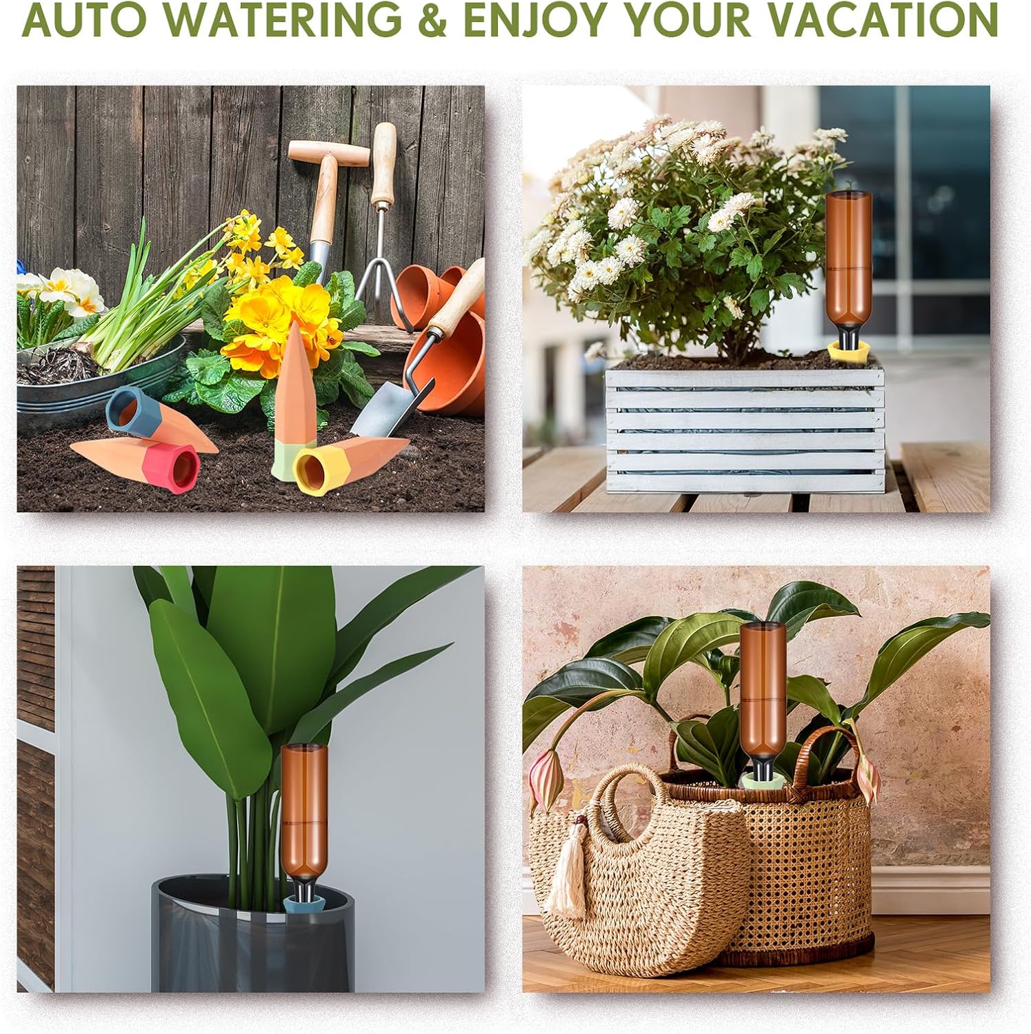 Features: Easy Installation and Versatile: This plant watering set is simple to install and versatile, they can be applied for indoor or outdoor plants, ideal for home, office or garden. Suitable Size: The plant watering bottle measures approximately 10.87 x 2.91 inches, with a smooth, transparent surface, which is stylish and convenient. The plant watering spikes measure approximately 1.89 x 6.85 inches, which is compact but has ample space for water storage. Specifications: Material: plastic, ceramic Color: brown, yellow, blue, green, pink Size: Plastic bottle: 10.94 x 2.76 inches/ 27.8 x 7 cm Watering spike: 1.89 x 6.85 inches/ 4.8 x 17.4 cm Package includes: 12 x Plastic bottles 12 x Watering spikes Notes: Manual measurement, please allow slight errors on size. The color may exist a slight difference due to different screen displays