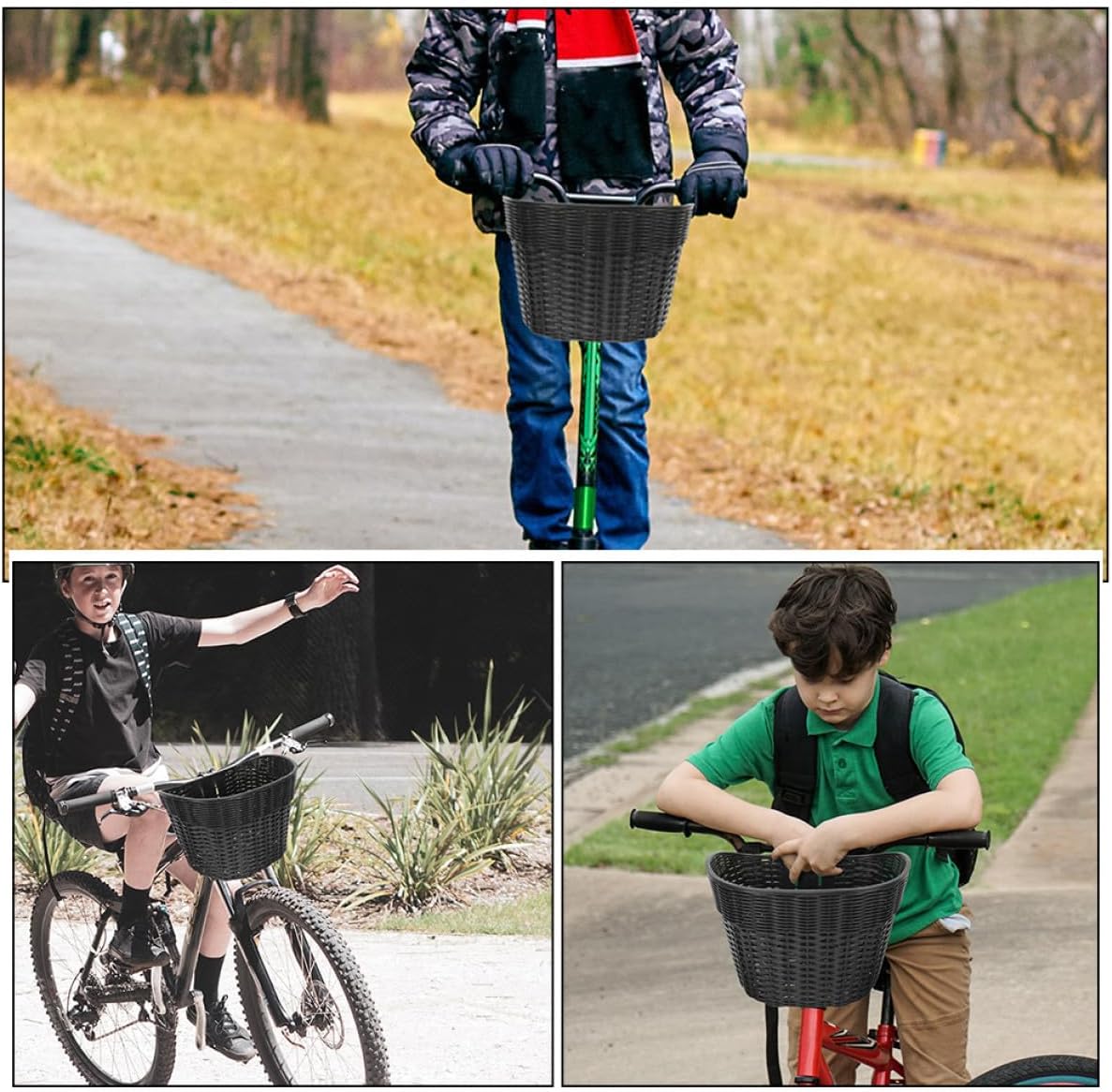 Package Include 1 x Bike Basket Characteristics -Material:Plastic -Product Info:Antique rattan car basket -Size:33.00X24.00X22.00cm/12.97X9.43X8.65in -Color:Black -Selection of good and anti-wear plastic material, sturdy and practical for a use. -Excellent craftsmanship and has a smooth surface, which is easy for you to clean it handlebar bike basket. -This basket is equipped with pre-drill hole, which is simple for you to install it to bike handlebar bicycle handlebar basket. -With this basket, you no longer have to worry about having no place to put things while riding front bicycle basket. -The storage capacity is large, which can store many things and reduce the burden handlebar basket.Goods Descriptionhandlebar baskets for bikes Do you want to buy a professional but bike basket? Our product can meet your requirement.bike handlebar basket Good material is very sturdy and durable, and its surface is very smooth, which is comfortable to touch.bicycle basket This basket is equipped with pre-drill hole, which is easy to attach the basket to the handlebar