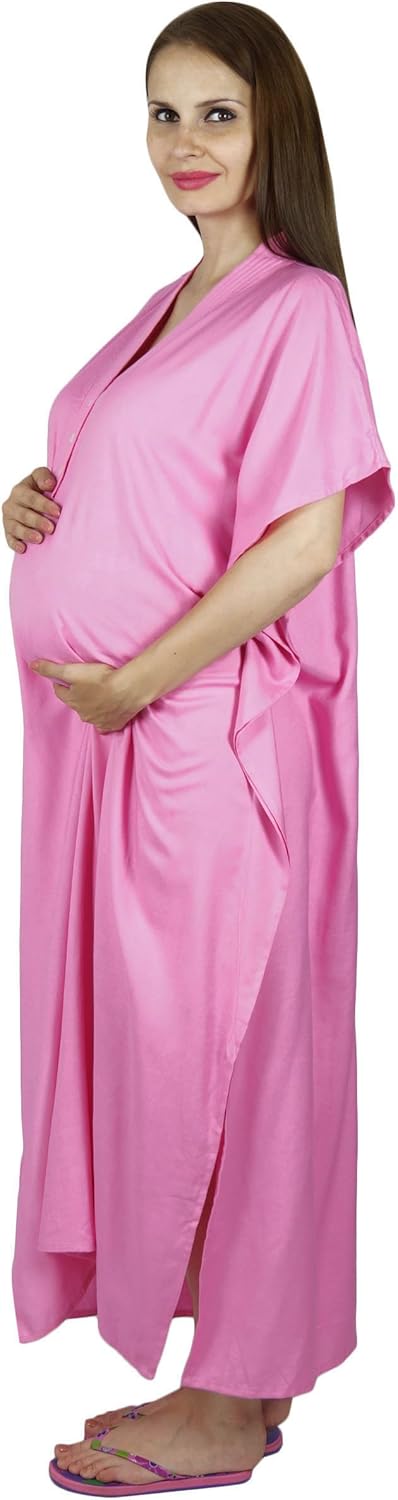 Bimba Introduces a new range of Maternity Kaftan. Perfect for Nursing mothers and Pregnant womens. All the Kaftans have deep necks (11-12 inches) so will fit all head sizes. Buttons on the front and one shoulder makes the already super comfortable kaftans even more so making it a perfect gift for Moms and to be Moms. You can wear it while you are pregnant or after the baby comes.* This is a beautiful maroon kaftan with Buttons on the front down to the waist and one side shoulder for easy nursing. Also has slits at both hems to allow more leg freedom as needed.** Image shows Ankle length kaftan but it can also be customized to other length option. You can choose the length of the Kaftan from the given variation option as per your liking. *** It comes with a belt which you can tie just under bust as per your suitability.**** We offer different circumference in these Kaftans. So you can choose your required size. Kaftans are worn little loose so make sure you buy correct size. If your bump size is 48" inches then please buy bigger circumference and not exact.Material: Rayon Color: MaroonWash Care: Dry Clean or hand wash in cold or mild. | Air Dry Only | Do not bleach | Iron it when slightly damp