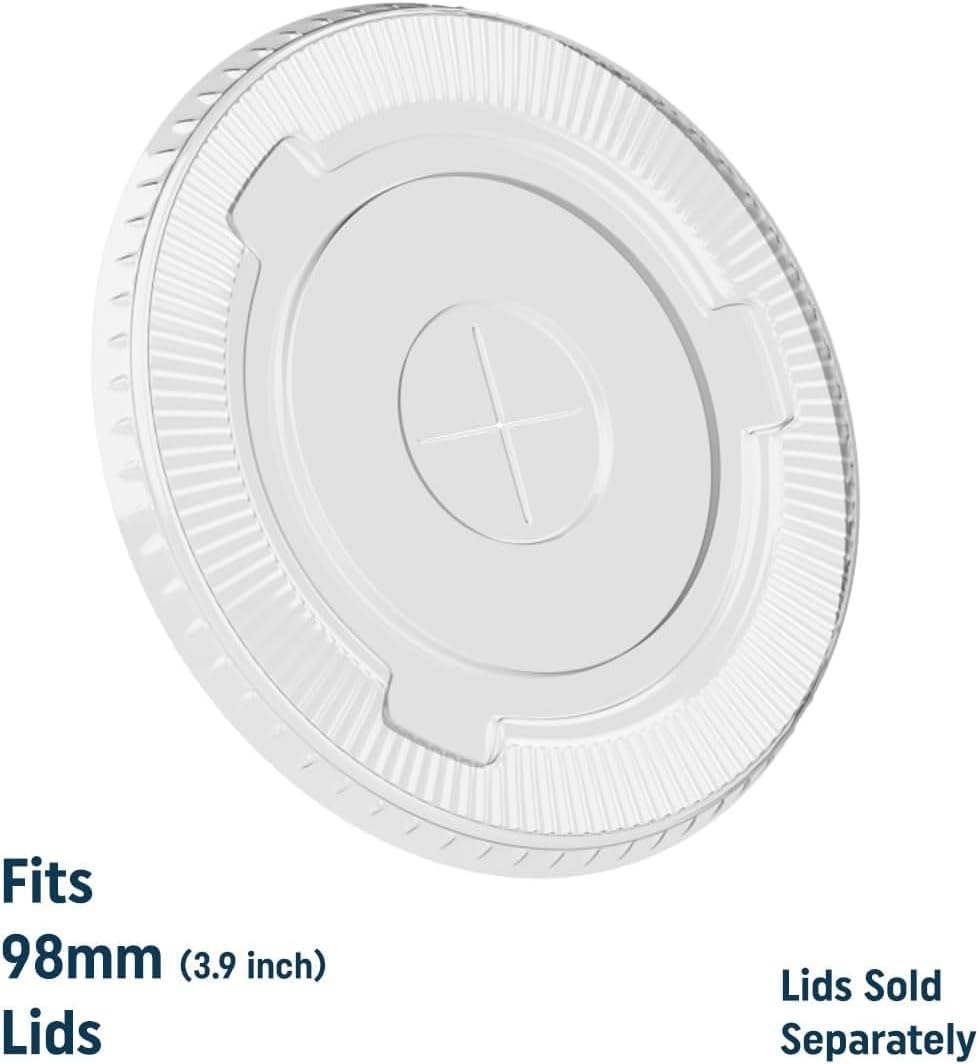 Iced Coffee Cups 16 oz Bulk [500 Pack] Ultra Clear PET - 98 mm Lid – 3.9 Inch Lid, Plastic Disposable Cup 16oz Crystal Clear Cups for Boba Tea Cold Brew Cup [500 Pack/Case]