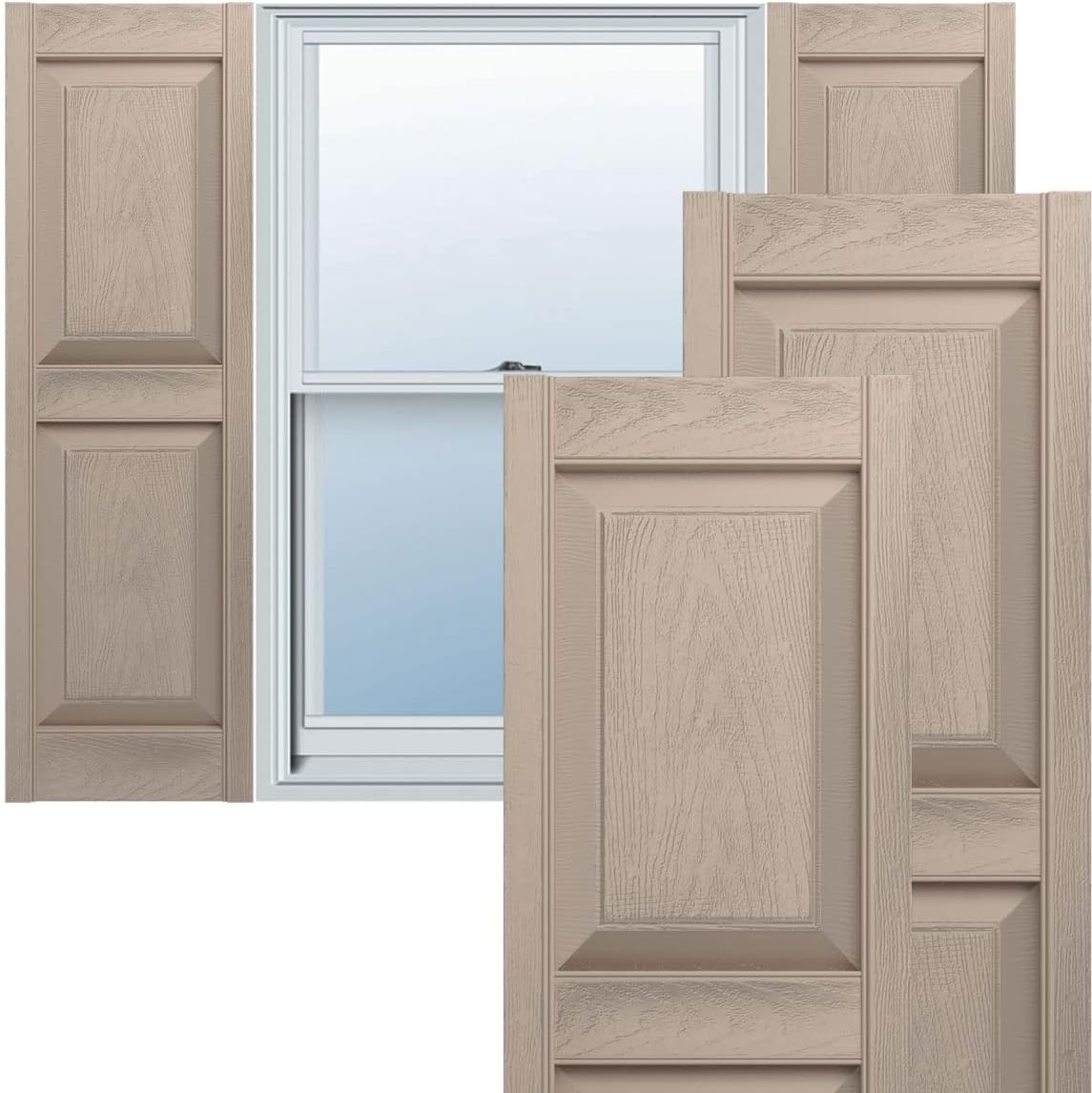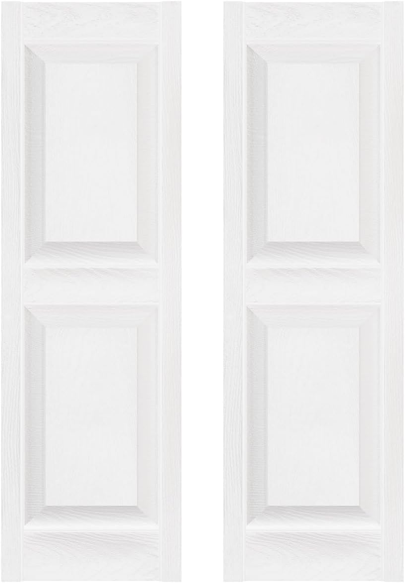 Boldly designed and available in a wide range of colors, the standard raised panel shutter is an excellent choice for many styles of homes. The texture and precise construction provides the look of authentic raised double panels. Customize color, length and width for the perfect look you desire for your home. Our shutters are made of durable vinyl, one of today's most versatile exterior materials. They are comparably lightweight, easy to maintain, and free of water damage, warping and peeling. Our vinyl shutters are available in a full range of rich colors, and they bring you years of enjoyment.