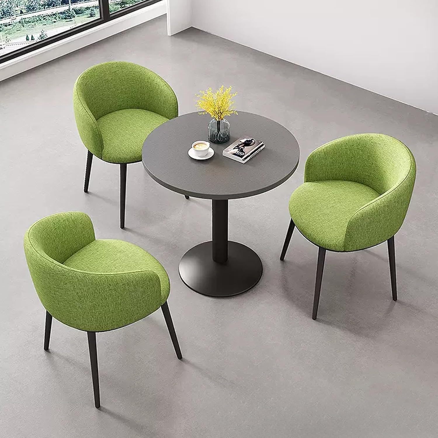 - Product Name: Table and chair combination- Color: Refer to picture for accurate color representation- Features: Simple, elegant, space-saving design- Bracket structure Material: Metal- Table shape: Round- Desk top material: E1 grade environmental protection plate- Table top diameter: 60cm/23.6in- Chairs material: PU leather/cotton and linen- Total chair height: 74cm/29.1in- Suitable for 3 people- Assembly requiredWarm Tips:1. Size Description: Please allow for a 1-3 cm error as the product is measured by hand. 2. Picture Description: Actual product may vary slightly in color due to lighting and display settings.