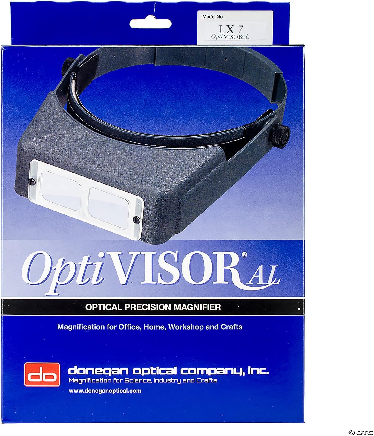 DONEGAN OPTICAL-OptiVISOR LX Binocular Headband with Optical Grade Lensplate #7-Magnifies 2-3/4x Power at 6 Inch. Perfect for anyone whose profession or craft requires close accurate work with both hands free! The adjustable side pivots allow the visor to tilt at your fingertips and a dial adjustment headband that conforms to comfortably fit all head sizes. The LX has a genuine leather padded comfort band with orthopedic felt for extra comfort. Lightweight lenses and tough materials, designed to last a lifetime. Not a safety device, do not use in place of safety glasses or face shield.