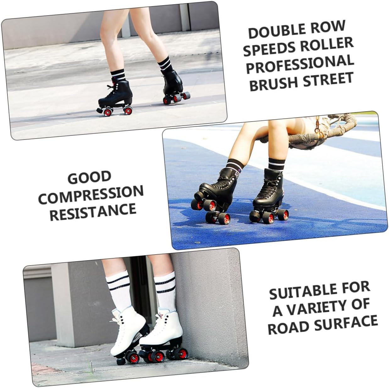 Package List 8 x Skating Wheels 1 x Wrench Characteristics -Product Info:Speed ??skate shoe wheels -Color: As Shown -Material: PU -Size: 5.80X5.80X3.90cm/2.28X2.28X1.53in -The roller skate wheels will give you great use experience. Performs well on wood, concrete, tile and other surfaces roller skates replacement wheel. -Reduce friction and maximize efficiency on various types of surfaces. These roller skate wheels work for casual indoor skating or competitive skating roller sakte wheels. -Adopted of , it is practical and durable, abrasion-resistant and pressure-resistant. -Suitable for double-row roller skates, skateboard, practical and wonderful, simple and useful wheel skate. -Perfectly great for daily practice, recreational, artistic skating, etc. Also, great gift for your or friends who like skating roller skates wheel.Goods InformationRoller-skate Wheels If you are looking for a professional and roller skate wheel, then your research is over here.roller skate tires That’s because our product can meet your need.Roller Skates Accessories Adopted of , it is practical and durable.roller sakte wheels Designed specifically for optimal performance on rough and uneven surfaces such as concrete and asphalt, which helps to the comfort of your skating