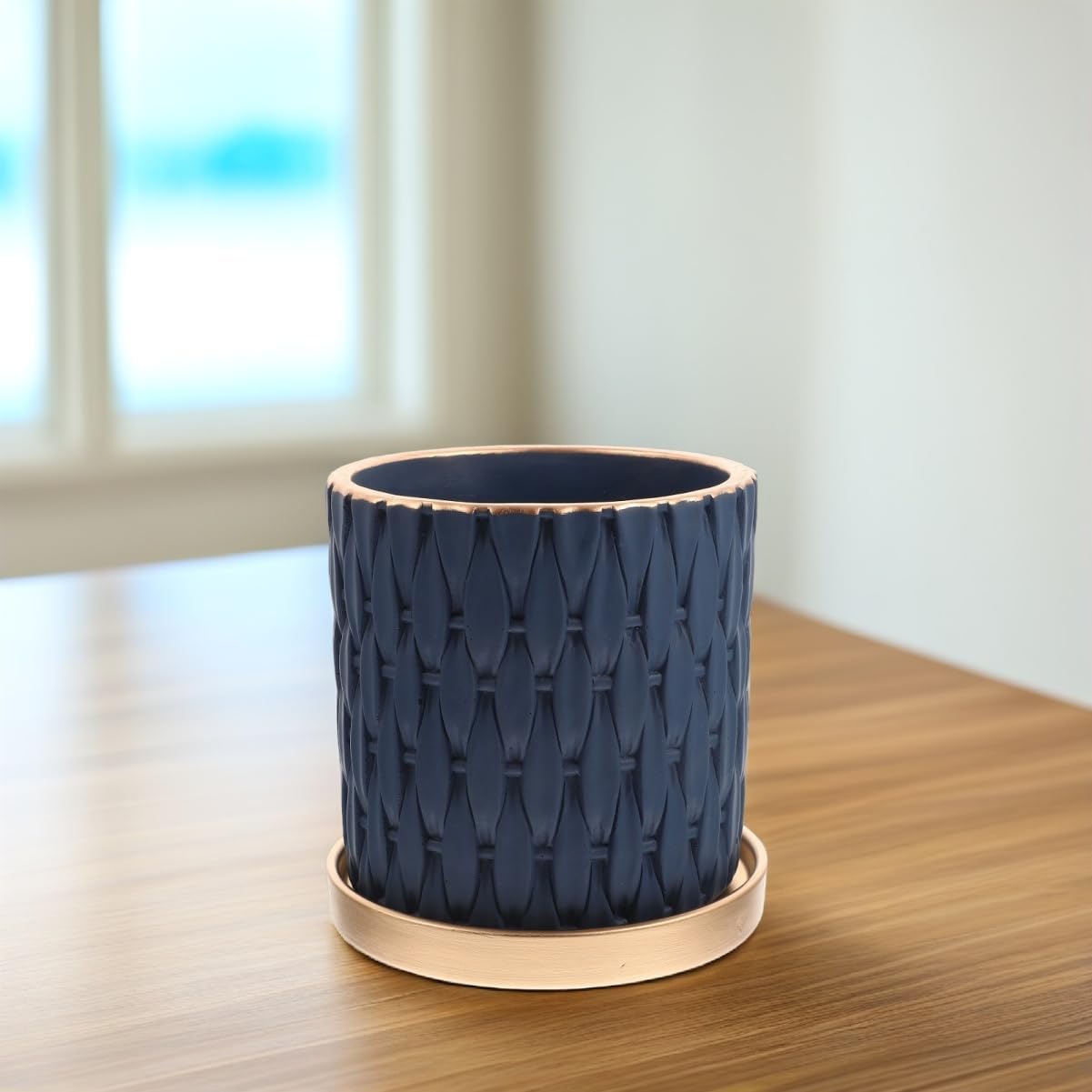 Package List 1 x Flower Pot (with Tray) Characteristics -Size:14.00X14.00X15.00cm/5.50X5.50X5.89in Garden Planting Tools -Color:Dark blue, golden Gardening Flowerpots -Material:Cement Garden Supply - Beautiful appearance, adds elegance to your garden patio yard or walkway Orchid Plant Container. - Fine workmanship and beautiful appearance ensure its popularity and practicality Succulent Plant Nursery Plant Pot. - Let your life be full of fun and pleasure, you will have a mood Nursery Plant Pot. - Made of cement material, , and sturdy for long term use Cement Flowerpot. - It is a flower pot suitable for succulents, and small flowers Flower Plant Pots.Goods InformationSucculent Nursery Pots Rational structure is helpful for your plants and other related plants to grow well, it's convenient for garden use.Flower Planter These planting flowerpots are great partners to plant your succulents.Plant Planting Pot This flower pot is sturdy, for use