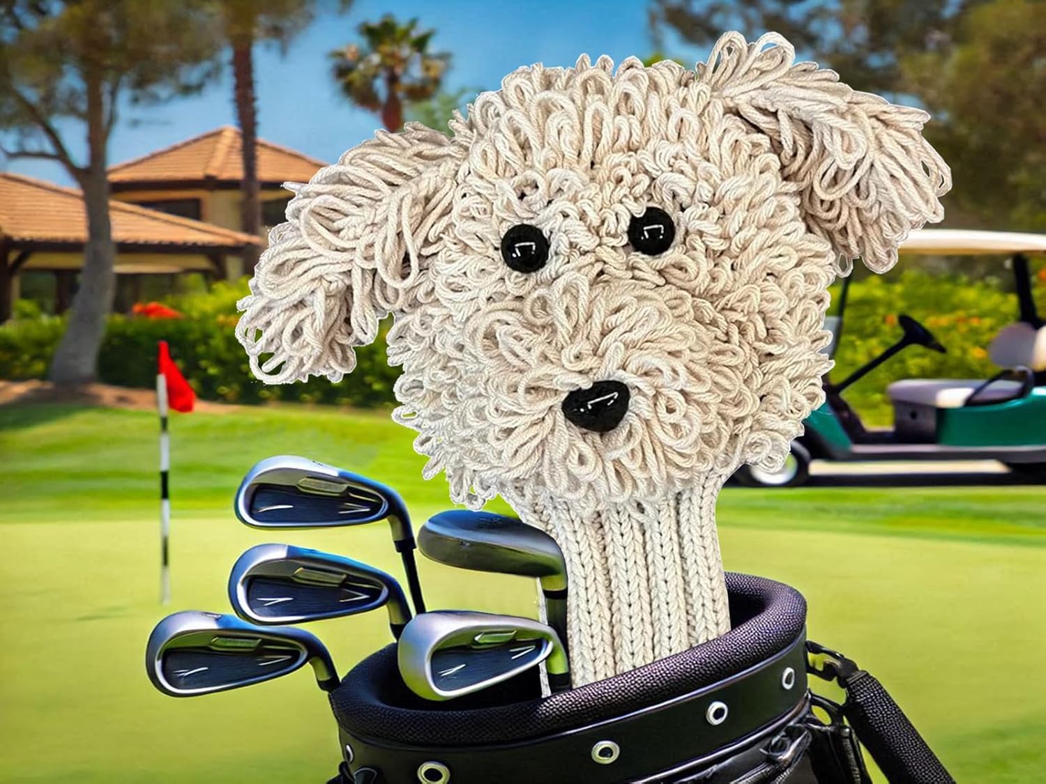 Add a touch of personality and protection to your golf clubs with our Funny Golf Headcover. Handmade with love, each crochet-finished Goldendoodle headcover is as unique as your game. Not only does it serve as a conversation starter on the green, but it also offers the protection your drivers deserve. The plush design is soft to the touch yet durable enough to withstand the elements, ensuring your clubs stay in top condition. Easy to put on and remove, it’s the ideal accessory for the golfer who loves to stand out. Make your golf bag instantly recognizable and inject some joy into your game with this adorable animal-themed headcover.