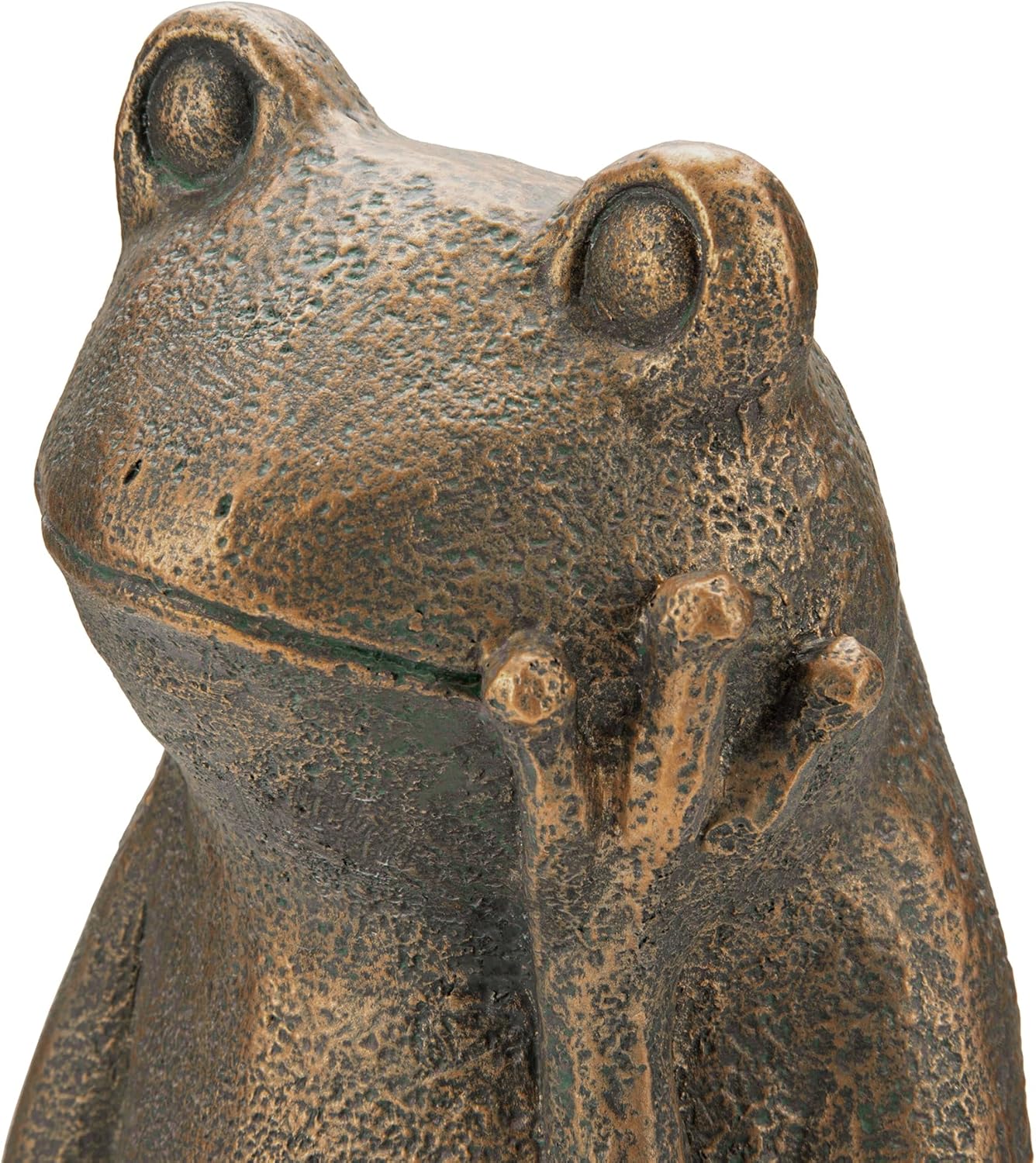 Transform your outdoor space into a tranquil retreat with our 12-inch Bronze Sitting Frog Statue. Handcrafted from durable polyresin and stone composite, this sculpture captures the frog in a moment of peaceful contemplation, its chin resting gently on one hand as if listening to the whispers of nature. The luxurious bronze finish reflects sunlight beautifully, creating a stunning visual effect that enhances gardens, patios, or ponds with artistic sophistication.Design & Durability CombinedEach statue is meticulously crafted to balance artistry and resilience. The polyresin-stone material ensures it withstands rain, sun, and wind without fading or cracking while the lightweight design allows you to reposition it effortlessly as your landscape evolves. Whether placed beside a bubbling water feature or nestled in a zen garden, it serves as a year-round symbol of calm and joy.Technical Details & CareMaterials: 50% Polyresin, 45% Stone, 5% FiberDimensions: 12" H x 9" L x 7" W, 2.2 lbsWarranty: 1-year manufacturer coverageCare Tip: Wipe gently, avoid extreme temperatures for longevityEmbrace the charm of nature with this versatile decor piece, an ideal centerpiece for garden beds or a thoughtful gift that inspires smiles.