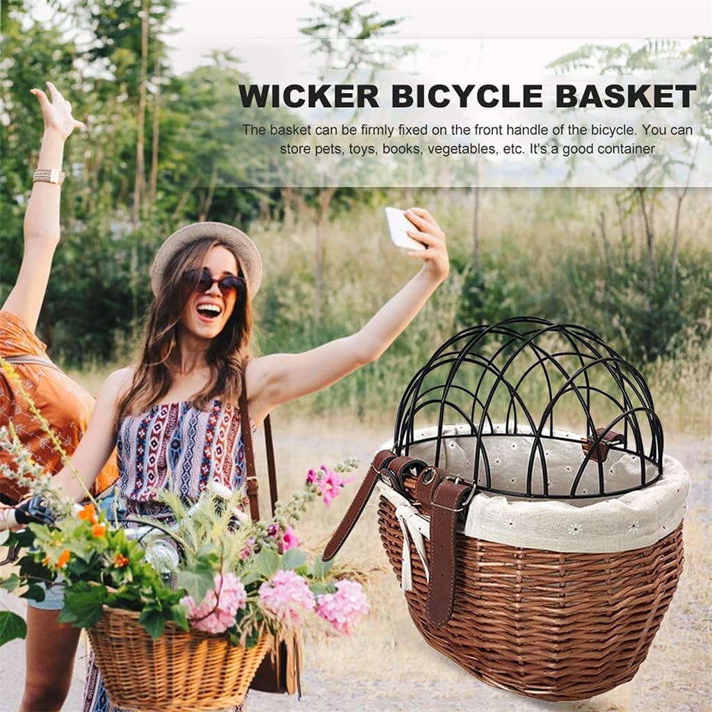 Features:The basket can be firmly connected to the front handle bicycle. It can store pets, toys, books, vegetables, etc. It is a good container and can be taken anywhere.It is convenient for animals or other items to be transported on the luggage rack, and the cover can be removed without losing.The fully hand-woven basket has good water resistance and can withstand all kinds of weather without cracking or chipping.Fasten the belt directly to the handlebar; easy to install.Good gifts for yourself, children, colleagues, and friends. Give them different surprises.specification:Material: hand-wovenOverall size: 30x25x30cmTotal weight: 655gBasket size: length, width and height: 30*25*20cm, net weight: 415gIron sleeve size: length, width and height: 30*25*15cm, net weight: 230gBelt size: length and width: 12.1 * 2.4cmNet weight: 5gColor: brownThe package includes:1* Bicycle basketnote:1. Manual measurement, please allow 1~3mm error, thank you.2. Due to the difference of different monitors, the picture may not reflect the actual color of the project. We the is the same as the picture.Suitable for a beautiful storage bag for road bikes.