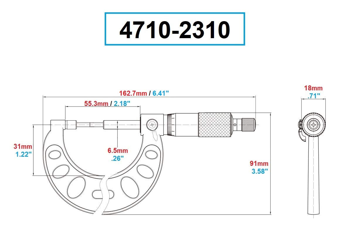 Dasqua 1-2" spline micrometer. resolution is 0.0001". Strictly made in accordance with DIN863. Spindle thread is hardened, ground and lapped for ultimate accuracy. Barrel and thimble have a satin chrome finish. Carbide measuring face. Clear micro fine graduations on satin chrome finish for easy reading. Quick and easy zero adjustment on sleeve. Positive lever locking clamp and ratchet stop for exact readings. The anvil & shaft have a small diameter for measuring splined shafts, slots, and keyways. Non-rotating spindle. A standard is included. Supplied in a fitted case.