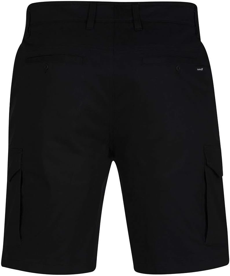The Hurley men's one and only cargo 2.0 features a set in exposed elastic waistband and rubberized button shank. This modern cargo short has front slash pockets and side cargo pockets