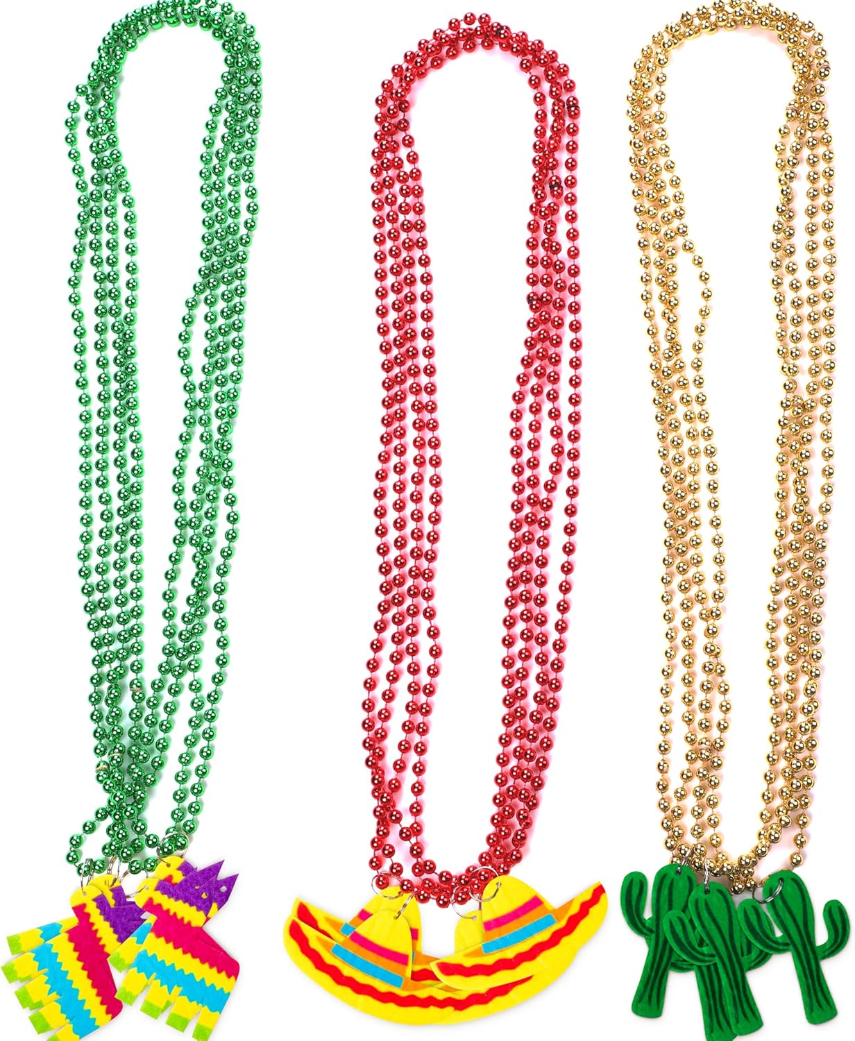 Add your fiesta a little more spice with these Fiesta Beaded Necklaces! They're great party decorations and party favors at birthday parties, Cinco de Mayo gatherings, Mexican party celebrations and more.
