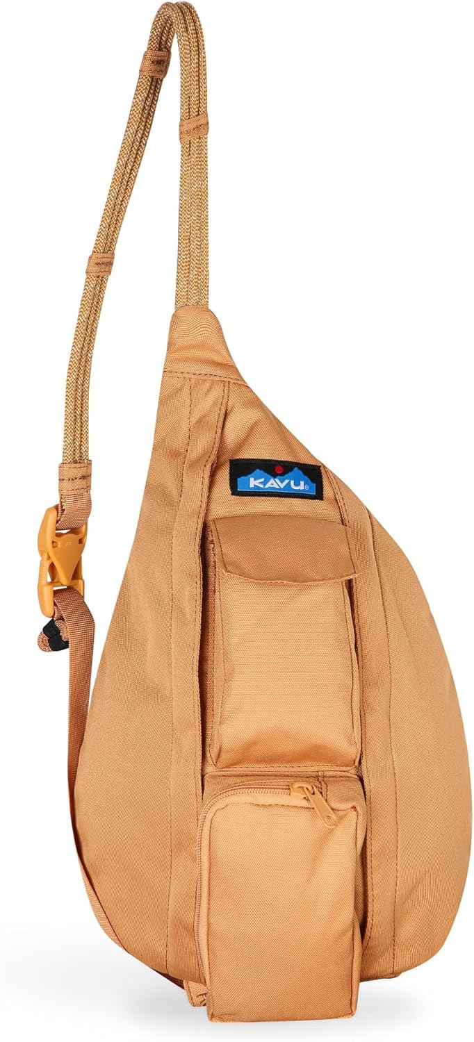 High Quality Material - Made from 11oz 600d polyester. Cross Body Strap Length: 20" - 40" Dimensions: 16” x 9” x 4".What Makes It Mini? The Mini Rope Sling is roughly 1/3 the size of KAVU’s traditional Rope Bag, but the front cellphone pockets are the same size. So you can get all the style and functionality of the standard rope bag in a sleeker, lighter sling.Storage Galore - The two vertical interior zip compartments are easy to access on the go, so they're perfect for small, daily essentials and the internal zipped pocket keeps keys or cash organized.Local Feel, Worldwide Appeal - Every season KAVU’s Seattle-based team of designers create full-on, funky patterns and styles. From city explorers to action seekers, we’re making tons of gear that can make today an adventure.Adventure Expert Tested - Since ‘93 rock climbers, skydivers, and outdoor action seekers put KAVU gear to the test all over the world. Our “true outdoor wear” is crafted to be the first thing you throw on when adventure calls.