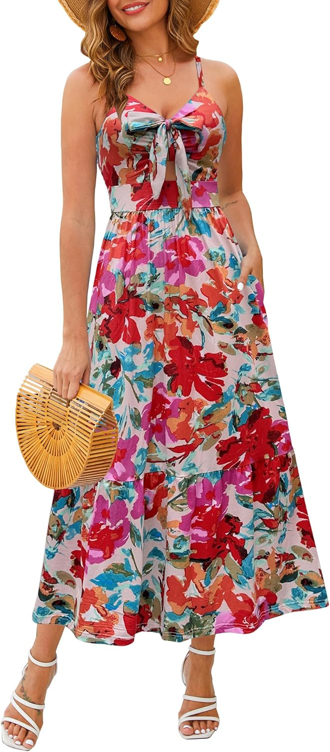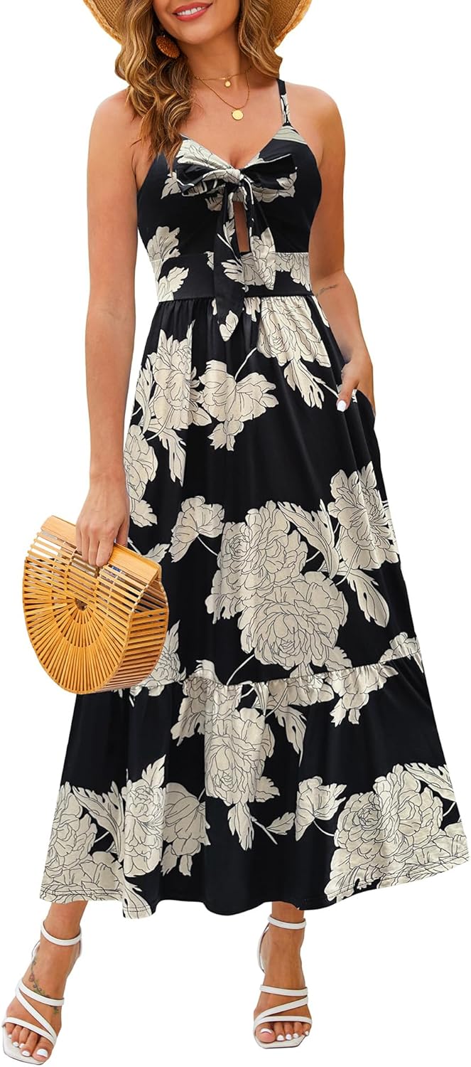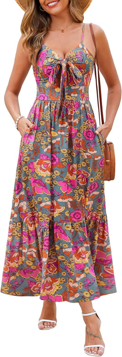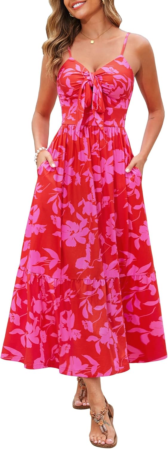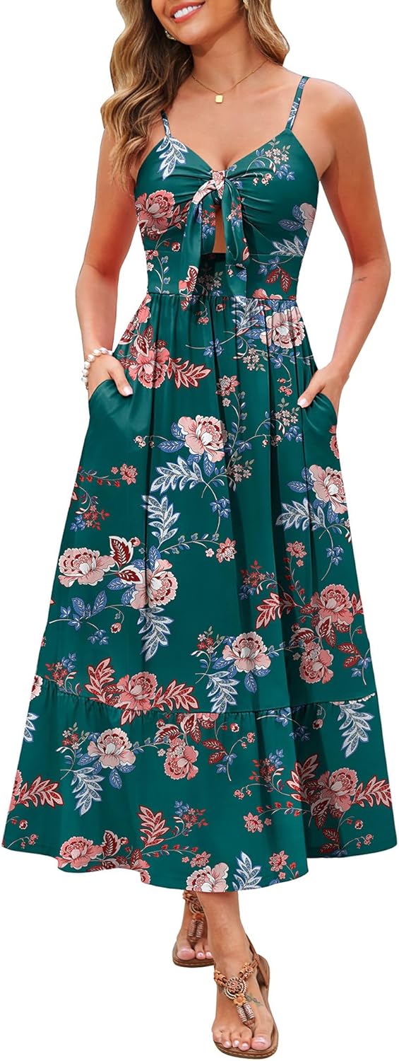 | Embellishment Feature | 2 Side Functional Pockets, Adjustable Spaghetti Strap Design, Front V Neckline, Square Neckline at Back-Smocked Back, Tie Front and Midriff Cutout |