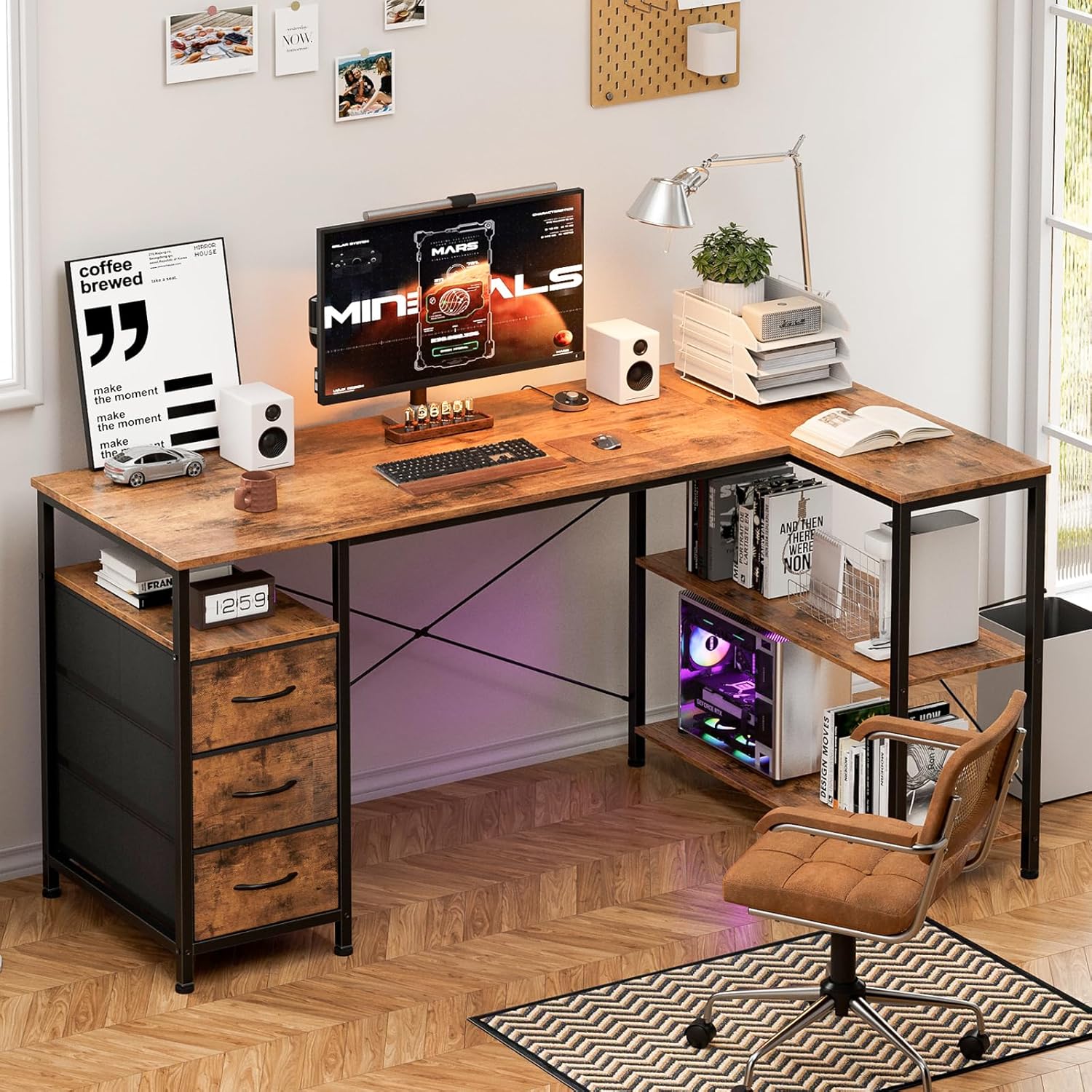 | Storage Options | 3 fabric drawers, reversible shelves |