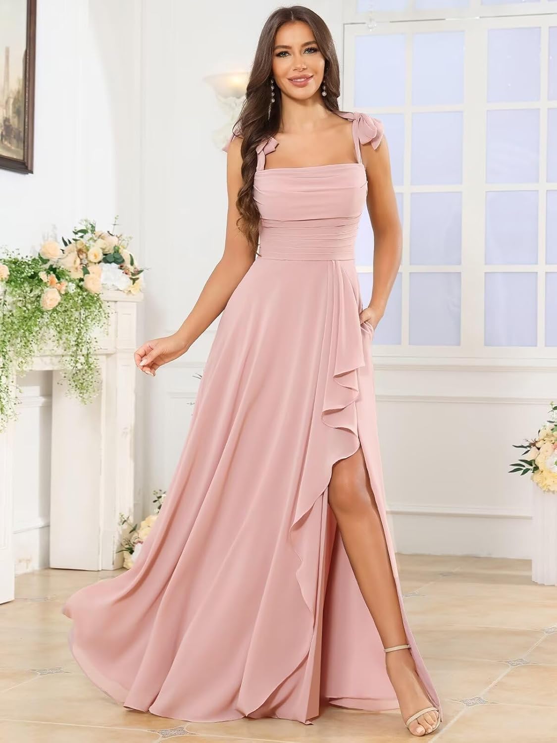 Welcome to Qbnme Store Description:We have Almost every kind of Dress,such as Bridesmaid Dress,Prom Dress,Mother of the Bride Dress and so on.You can wear it to Different Occasions,such as Wedding,Engagement,Banquet,Birthday Party,Formal Evening Party and other special occasions. Material:Chiffon Dress Length:Floor Length Neck style:Square Neck Feature:Pleated & Ruffle & with Pockets/Slit/Bow Built-in Bra:Yes Dress Type:Bridesmaid Dresses Occasion:Wedding,Engagement,Formal Evening Party,Cocktail Party,Carnival Party,Special Occasion. Note: 1.Size Tips:There maybe 1-2 cm deviation in different sizes,locations and stretch of fabrics.Size chart is for reference only. 2.Color Tips:The quality of our dress is very good,but the real color may be slightly different from the picture because of the monitor. 3.Washing Tips: Dry Clean or Hand Washing will keep this dress in top condition. Size Chart (just for reference): US 2:bust:32.5",waist:25.5",hips:35.75", hollow to hem:58",height:63" US 4:bust:33.5",waist:26.5",hips:36.75", hollow to hem:58",height:63" US 6:bust:34.5",waist:27.5",hips:37.75", hollow to hem: 59",height:65" US 8:bust:35.5",waist:28.5",hips:38.75", hollow to hem:59",height:65" US 10:bust:36.5",waist:29.5",hips:39.75", hollow to hem:60",height:67" US 12:bust:38.0",waist:31.0",hips:41.25", hollow to hem:60",height:67" US 14:bust:39.5",waist:32.5",hips:42.75", hollow to hem: 61",height:69" US 16:bust:41.0",waist: 34.0",hips:44.25", hollow to hem:61",height: 69 If you need custom size,please send your following measurements to us by Amazon messages. 1.Bust _____Inch(cm) 2.Waist _____Inch(cm) 3.Hips _____Inch(cm) 4.Hollow to Hem(without shoes) _____Inch(cm) 5.Height(without shoes) _____Inch(cm) 6.Heels _____Inch(cm)