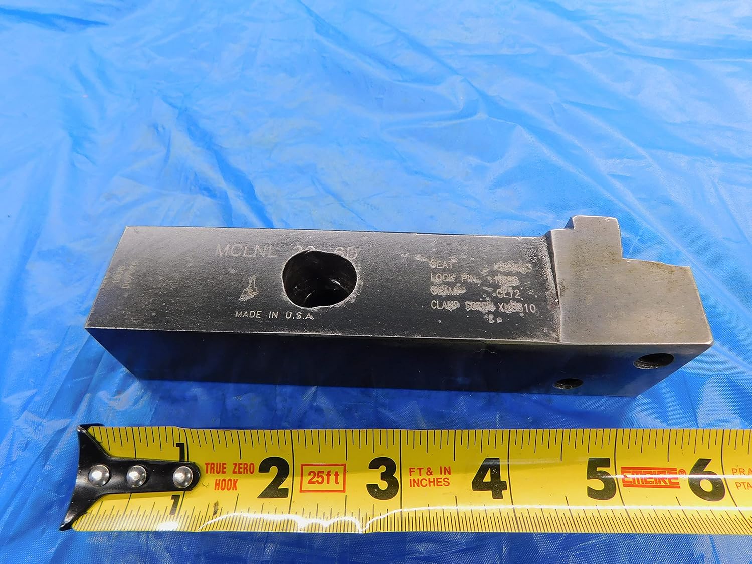 YOU ARE PURCHASING THE PICTUREDLATHE TURNING TOOL HOLDER.SOLD BY M & J TOOLING LLCDAYTON, OHIOPRODUCT SPECIFICATIONS:CONDITION: USEDSLIGHT WEAR NEAR SEAT--SEE PHOTOSSHANK SIZE:1.25 SQUARESIZE / LABELING:MCLNL 20-6DMANUFACTURER / BRAND:M & J TOOLING LLCTHANK YOU FOR YOUR BUSINESS!LOCATION:3-2-H-8