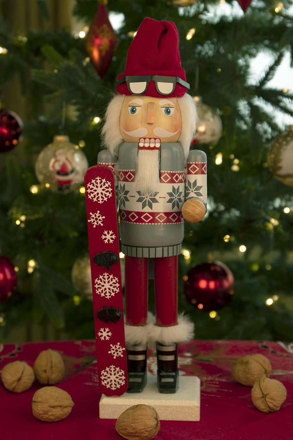 Merry Christmas Co. 14 Inch Traditional Wooden Nutcracker, Festive Holiday Tabletop Décor, Snowboarding Santa