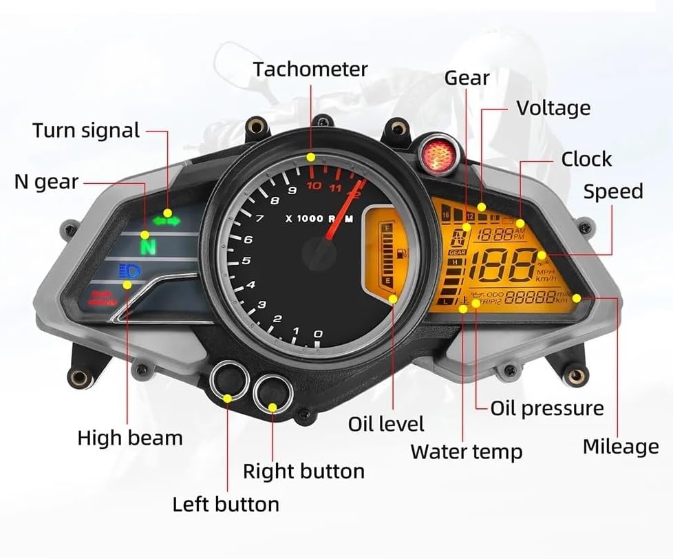 Before purchasing, please make sure the product size is suitable for your motorcycle vehicleSpecifications:Name : Motorcycle OdometerMade of ABS+MetalShell Color: Black RPM Range: 0~12000Speed Unit: km/hVoltage: 12V DCFitment:For For pulsar 135 150 160 180 200NS 2015-2018Package Include:1 x Motorcycle Tachometer