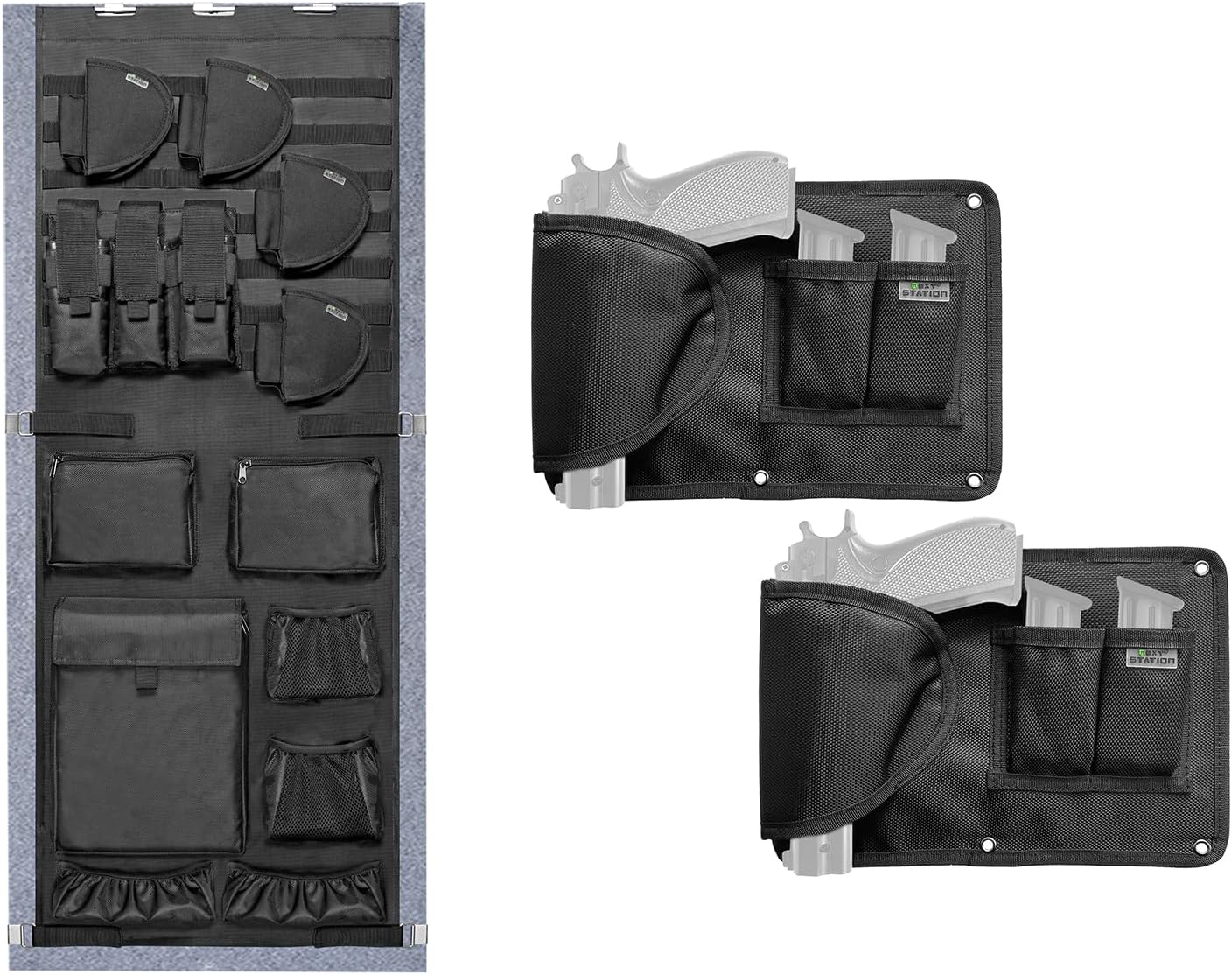 Molle Gun Safe Door Panel Organizer with Pistol Holder Mag Pouch, Fit Door Panel Width from 18.5 to 25inches, Reinforced Pistol Holster Magazine Holders Combination for Gun Cabinet