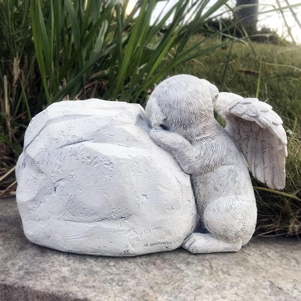 LAGGATTS Personalized Pet Dog Memorial Stone with A Sleeping Dog Angel Statue, Dog Grave Markers, Dog Headstone Tombstone-Forever in My Hearts