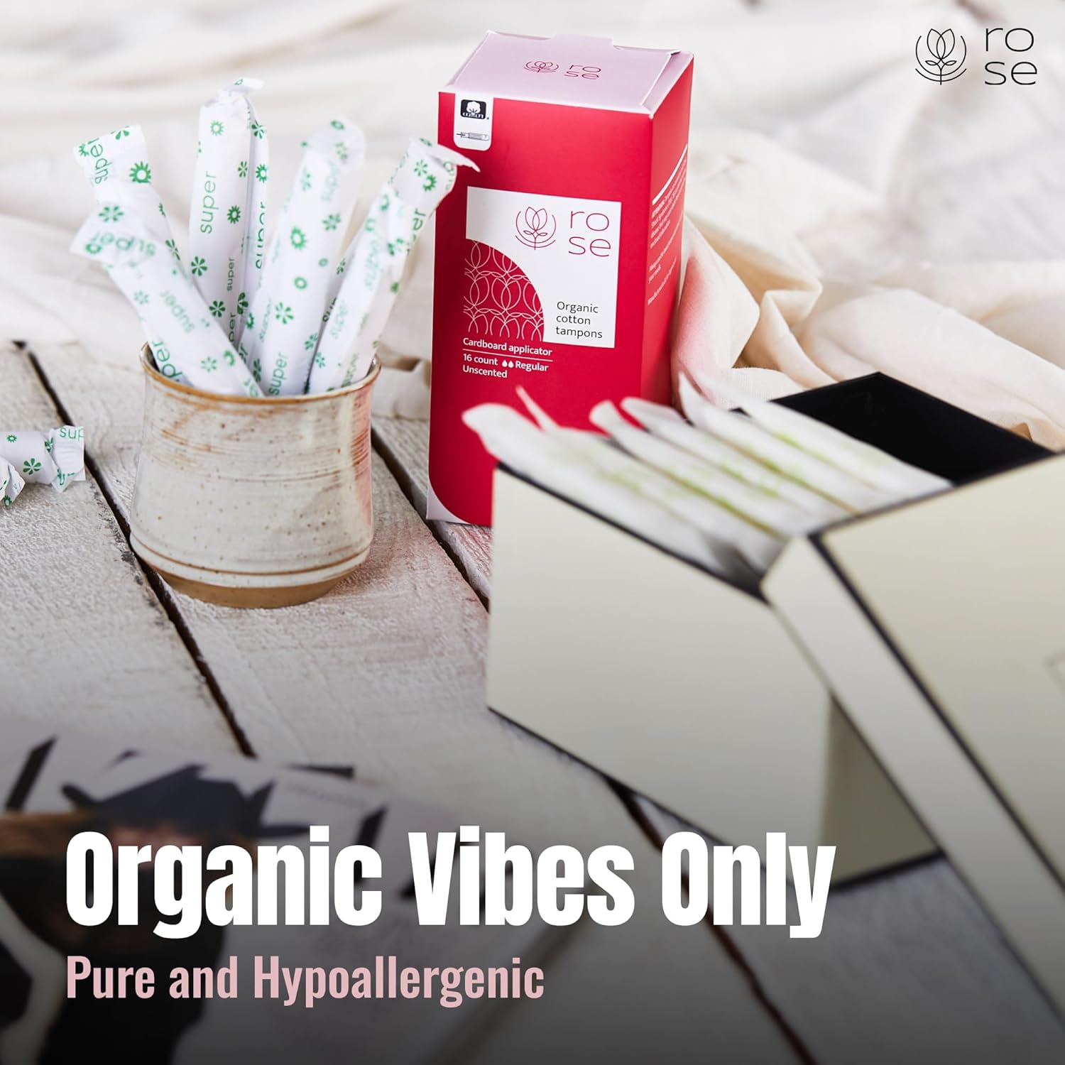The first ever tampon with all certified irganic security veil. Patent pending. To prevent fiber shedding. ROSE tampons are comfortable, highly absorbent and hypoallergenic to reduce irritation and allergy, and made with 100% certified organic cotton.
