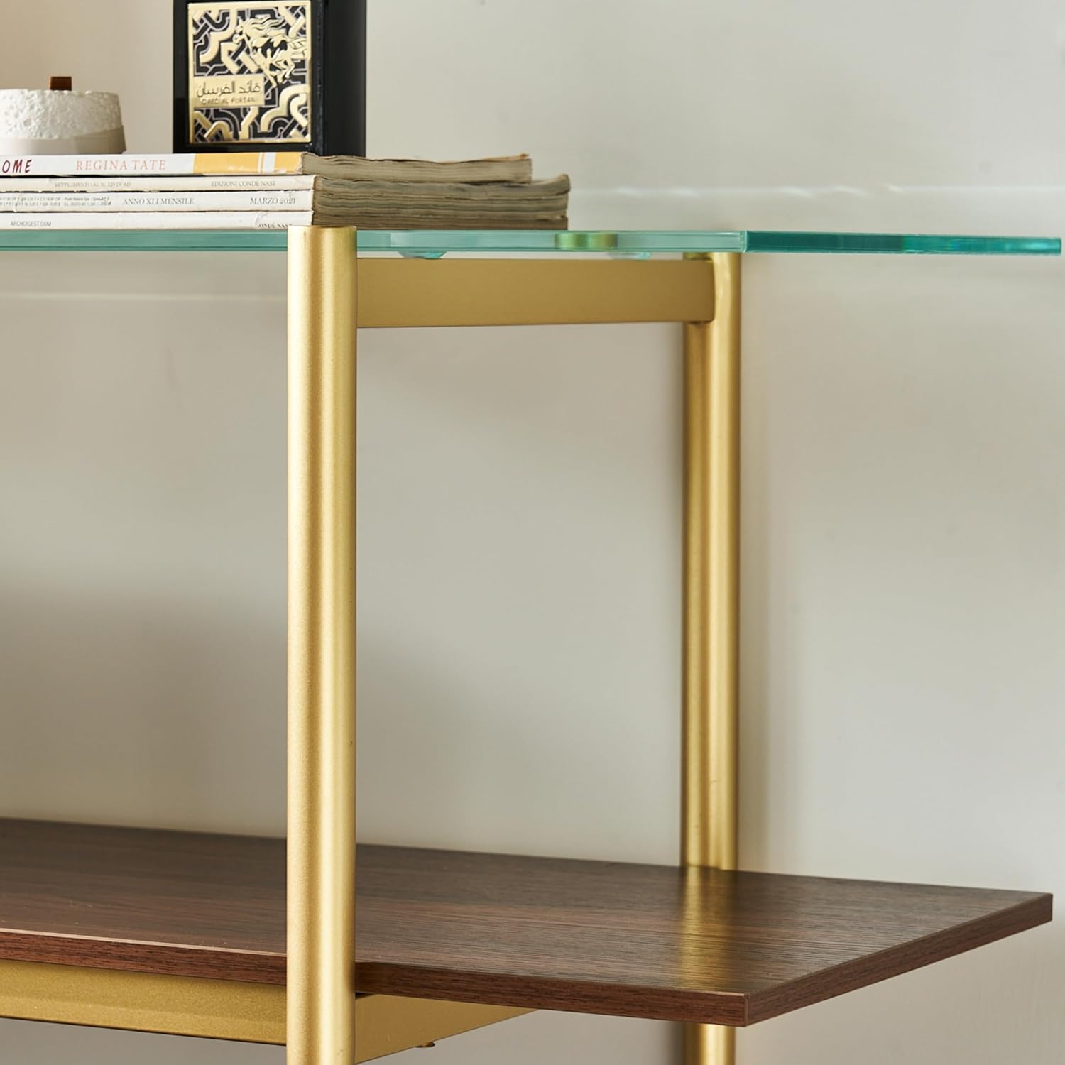 Saint Mossi 3-Tier Brown Console Table for Living Room, Modern Narrow Entryway Table, Glass Sofa Table for Hallway, Foyer, Corridor, Office, Clear Glass Top & Gold Frame, D41×H31xW13