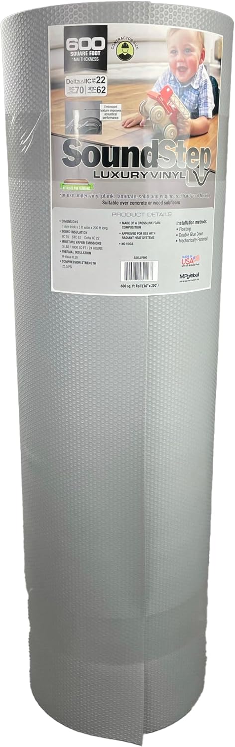 You chose the perfect flooring for your room but don't know which underlayment to install?SoundStep LV is an economic underlayment choice, allowing support for all types of hard surface flooring with added acoustic benefits. The attached vapor barrier helps to protect your flooring from water damage, and protect your subfloor from topical spills and accidents. It is specially designed to offer superior bond with adhesives, making it a great choice for glue-down installation. With the insulating R-value of 0.20, your flooring will feel warmer in the winter and cooler in the summer. Polyethelyne foam underlayments are the industry standard for floating wood and laminate floors. This underlayment will support and maintain the functionality of your flooring for a lifetime. SoundStep LV underlayment can also be used with radiant heat systems such as QuietWarmth, for an extra warm and cozy floor. Polyethelyne foam will absorb sound and keep it from traveling to other rooms, making floating floors sound solid underfoot. The attached vapor barrier protects the overlying floors from water damage when installed over concrete, but it’s also perfect over wood subfloors. SoundStep LV is an economical way to provide support to your new flooring and reduce noise in your home.