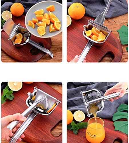1. Material: stainless steel2. Corrosion resistant and durable3. Simple and convenient operation4. Designed with the principle of leverage, the process is silent and effortless5. Porous filter disc to separate juice residue6. Removable, washable throughout the body7. Triangle juice outlet design, no splashing or dripping8. Dimensions:25x11cm10. Weight: 430g