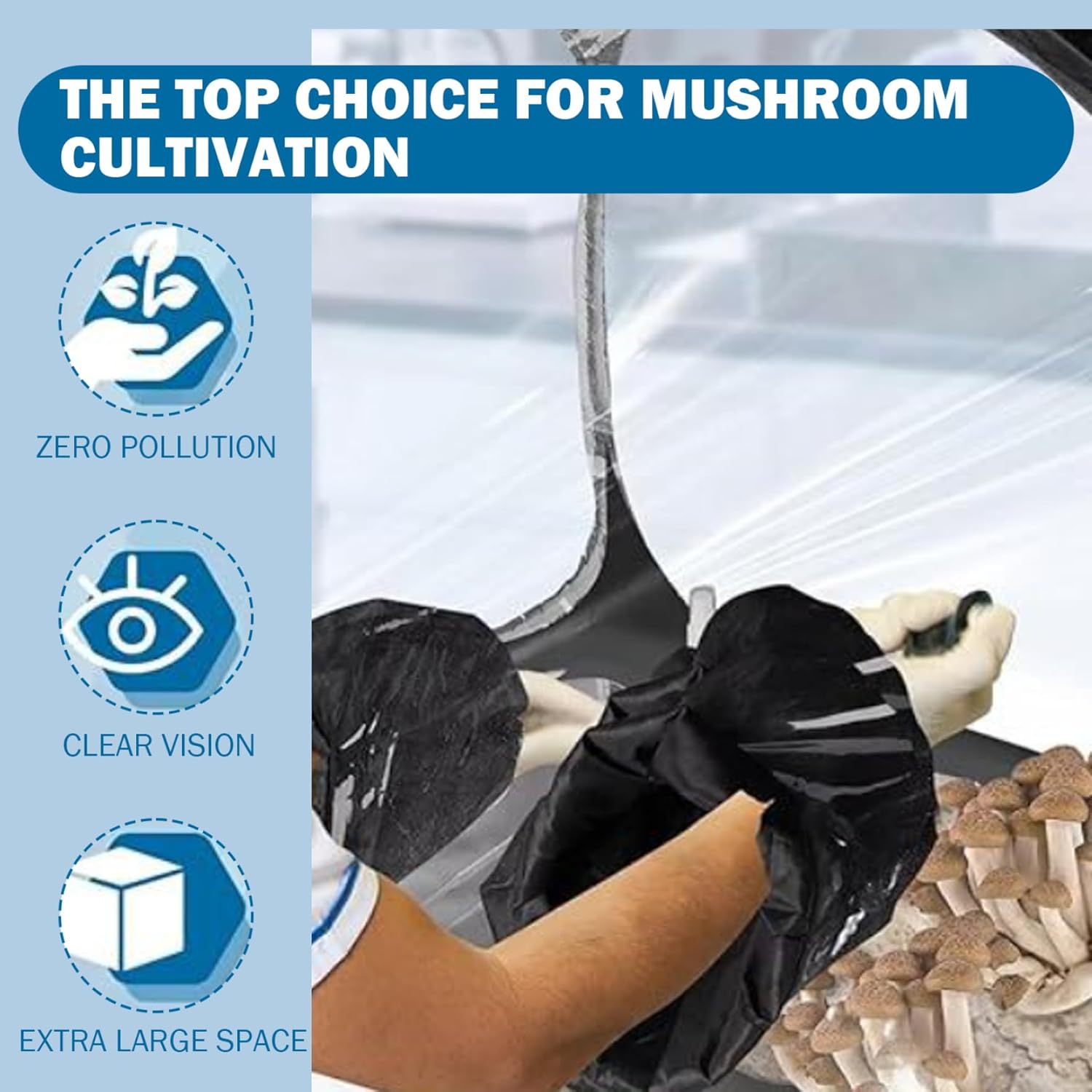 Description: The zippered Still Air Box 38x20x25 Inch Transparent Plastic Mushroom Grow Tent is a foldable, portable mushroom grow box designed for both beginners and skilled cultivators, featuring a clear plastic body that allows constant observation without opening, reducing contamination risks, while included are a built-in thermometer and two spray bottles to maintain precise growing conditions; with its , foldable construction, it's easy to transport and store, and its spacious interior supports various mushroom grow bags and kits, making it ideal for spores and horticulture supplies, while the zippered closure secure access and simple cleaning, ensuring an optimal and sterile environment for mushroom cultivation. Features:. -Color: Transparent. -Material: Plastic. -Size: 38x20x25 inch. Note:Manual measurement, please allow slight errors on size.The colors may exist slight difference due to different screens. Package Including 1 * Mushroom Grow Tent1 * Thermometer1 * Two spray bottles