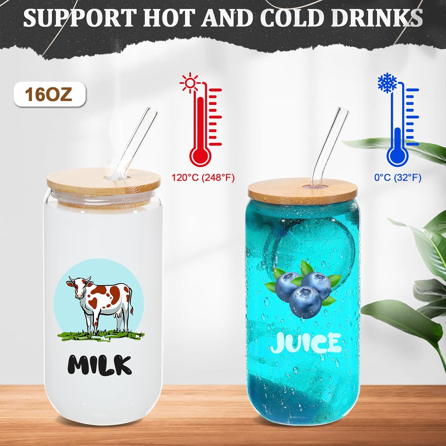 Features: Our gift box comes with clear windows, which allow you see clearly what is inside, can make your warping more eye catching and charming. The 16 oz glass sublimation cup with lid and straw allows you to DIY as you like, and it can be chosen as a gift for your father, mother, wife, partners, coworkers and more, they will be happy to get the sweet gift. Specifications: Main material: glass Color: as shown Size: (about) Tumbler: 16 oz in capacity Box: 3.08 x 3.08 x 6.38 inch Ribbon: 1.18 x 35.43 inches/ 3 x 90 cm Package includes: 12 x Sublimation cups blank with bamboo lid, straw and straw brush 12 x Silicone base 12 x Clear window gift box 12 x Ribbons Notes: Manual measurement, please allow slight errors on size. The color may exist a slight difference due to different screen displays. Winding risk may exist, please keep our product away from children.