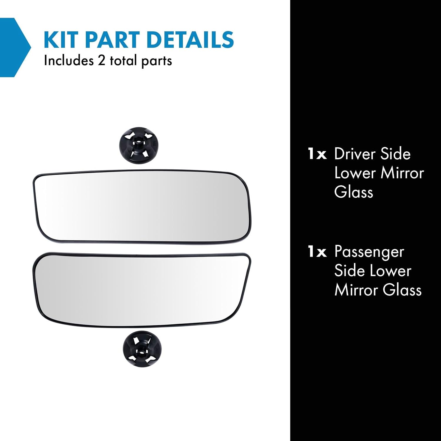 | Included Components | 1 Driver Side Lower Mirror Glass, 1 Passenger Side Lower Mirror Glass |
