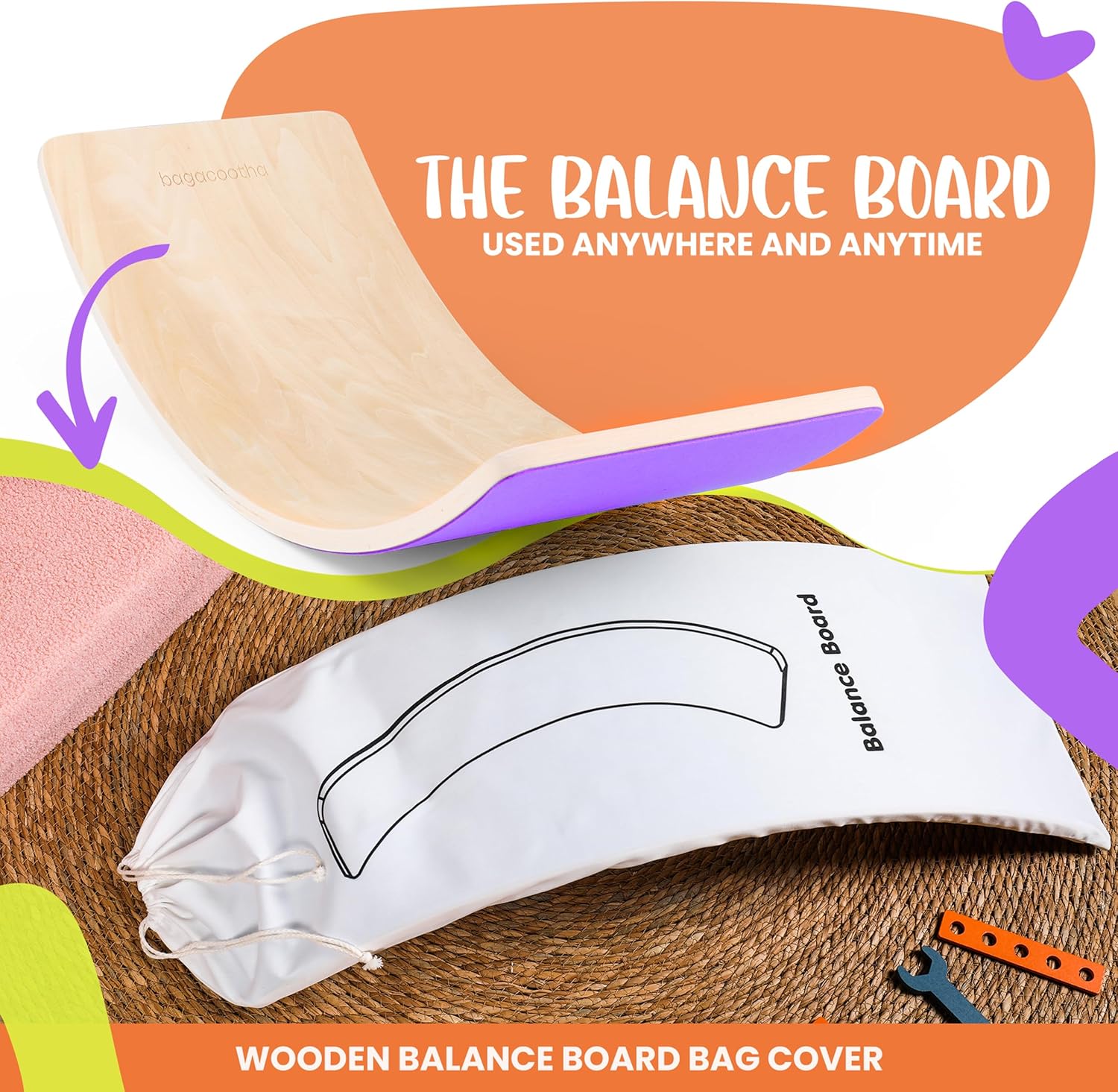 Unlock a world of fun and imagination with our Ultimate Wooden Balance Board for Kids! Perfectly designed to inspire creative play while promoting balance and coordination, this versatile board will become your child's favorite toy. Made from high density hardwood and finished with a child-safe coating, it's built to withstand the wildest playtimes. Whether it's a slide, a bridge, or a cozy reading nook, the possibilities are endless. Plus, it comes with a convenient carry bag for easy storage and transportation. Safe, fun, and eco-friendly – it’s the perfect addition to your home! Our wooden wobble board, made from 10 layers of high-density plywood, supports up to 450 lbs for safe, durable play. It features a smooth, polished surface with a child-safe coating, ensuring every edge is gentle to the touch. This balance board also helps for aiding recovery and improving stability. From balancing and building to sliding and imagining, the Bagacootha Balance Board toy offers endless play possibilities. It can be a tunnel, a bridge, or a cozy reading nook, limited only by your child's imagination. Encourage balance, coordination, and strength with each wobble. Ideal for developing bodies and minds, it fosters creative thinking and problem solving skills. Complement your collection with a teeter popper, a toddler balance beam, wobble disk toddlers, and balance pods to create a comprehensive set of balance toys. Crafted from sustainable hardwood with non-toxic finishes, our wobble board is environmentally friendly. It comes in a reusable storage bag for easy tidying and transport. The felt base protects floors from scratches, ensuring a quiet playtime environment. Ideal for Balancing and Physical Therapy, it offers robust and safe play options. Enhance your play area with a Wooden Rocker for Kids 1-3 to complete the perfect setup for active and imaginative play.