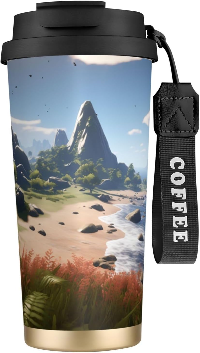 Summer Island Beach Experience the ultimate blend of style and functionality with our uniquely designed coffee mug. Perfectly suited for those who appreciate individuality, this 16 oz tumbler features a full-print, customized design that sets it apart from ordinary mugs. Made from top-grade 316 stainless steel on the inside and 201 stainless steel on the outside, along with a PP lid and straw, this mug is not only stylish but also incredibly durable.The superior insulation keeps your drinks at the desired temperature for more than 12 hours, ensuring you can enjoy your coffee, tea, or any other beverage no matter the weather. The ergonomic, tapered shape of the mug provides a comfortable and firm grip, making it easy to handle and carry. Whether you're on the go, relaxing at home, or working in the office, this versatile tumbler is the perfect companion.Additional features include a dual-drink lid, a convenient straw, and a sturdy nylon wrist strap for portability. The non-slip base adds an extra layer of security, keeping your drink stable on any surface. For cleaning, simply wash with water or wipe down; avoid using bleach or a dishwasher. Note that due to different measurement methods, a slight variation of 1-3 cm in size is considered normal.Make a statement with our unique, customized coffee mug, and elevate your drinking experience today!