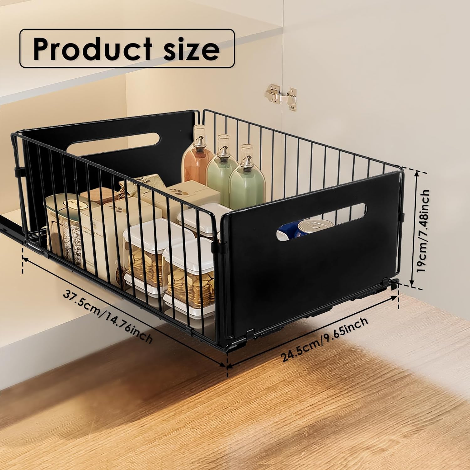 Parts List:1 × Pull Out Cabinet OrganizerProduct Specification:Description:This sliding drawer organizer is made of carbon steel, sturdy and rust resistant, which can easily hold a variety of items, suitable for kitchen, living room or bathroom cabinets. It is made of silent sliding rail, sliding smoothly and noiselessly, it is easy to reach the itemsKey Feature:2 Sizes for Your Choice: This pull out cabinet organizer has 2 sizes for your choice, the small size is 37.5 x 24.5 x 10 cm / 14.76 x 9.6 x 3.9 inches, and the large size is 37.5 x 24.5 x 19 cm / 14.76 x 9.6 x 7.48 inches, which is enough to meet the needs of daily useSturdy and Enduring: This sliding drawer organizer is made of carbon steel and plastic, sturdy and enduring, not easy to deform, suitable for long term useSpecification:Product Name: Pull Out Cabinet OrganizerColor: BlackMaterial: Carbon Steel + PlasticSize (Optional): Small, LargeSmall Pull Out Cabinet Organizer: 37.5 x 24.5 x 10 cm / 14.76 x 9.6 x 3.9 inchesLarge Pull Out Cabinet Organizer: 37.5 x 24.5 x 19 cm / 14.76 x 9.6 x 7.48 inchesNote:1.There may be slight differences between the picture and the actual color of the commodity. We will try our best to show you the exact color.2.Please allow slight dimension differences due to manual measurement.