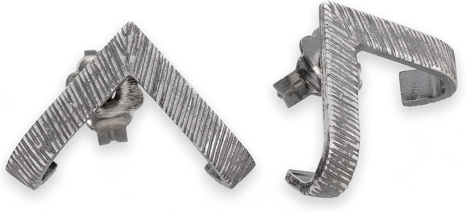 These handcrafted V-shaped huggie earrings in 24K gold-plated 925 sterling silver bring modern elegance with a touch of sophistication to your everyday life. The minimalist design flatters the earlobe while making a confident statement.The distinctive V-shape gently embraces the earlobe, lending a contemporary edge to any look. The textured surface reflects light in a especially beautiful way, making each pair unique. These versatile earrings will take you from office days to evening dinners - always appropriate, never overwhelming. Crafted from 100% recycled 925 sterling silver with 24K gold plating that gives the structured surface a warm golden radiance.Completely nickel-free and hypoallergenic - ideal for sensitive skin and daily wear. The premium 24K gold plating protects against tarnishing. The ergonomic V-design sits comfortably on the ear, offering all-day comfort - simple, timeless and with that special something.Dimensions: Height 17mm (0.67"), Width 13mm (0.51"), Weight 0.95g per earring. An accessory for women who understand that true elegance lies in simplicity.A perfect gift for the modern woman: For the colleague with an eye for clean lines, the best friend who appreciates subtle details, as a stylish surprise for special occasions, or for any woman who wants to combine contemporary design with feminine flair - these earrings represent confidence and modern style.What's Included: Branded gift box made from recycled cardboard with velvet pouch - ready for gifting.Care Instructions: Wipe with a soft cloth. If needed, clean with mild soap solution and dry thoroughly. The 24K gold plating will maintain its beauty with careful handling.