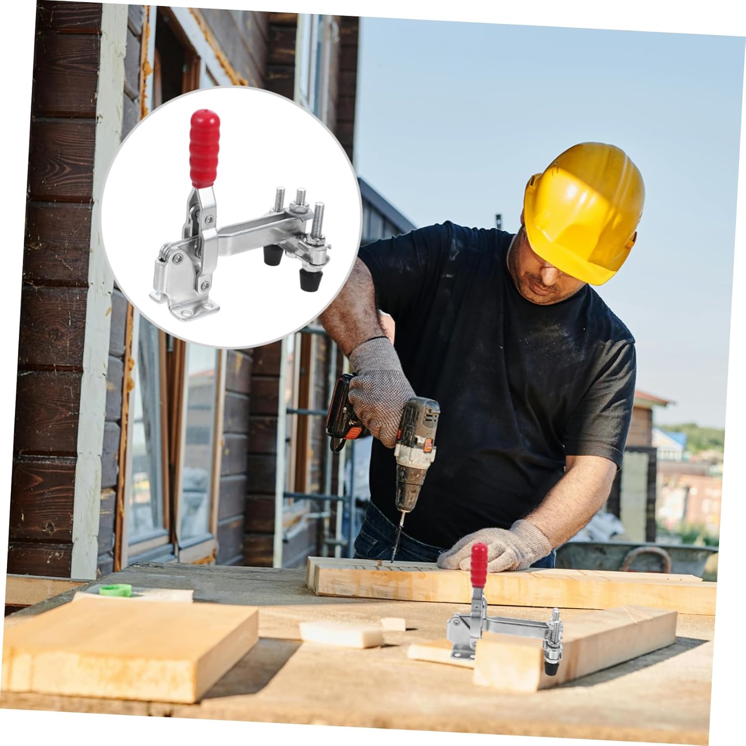 Package List 2 x clamp Features -Color:Red clamp fixture -great for welding: this clamp is specifically designed for welding tasks, providing stable and reliable clamping force to ensure precise and welds hand tool toggle clamp -Screw: M8; hole diameter:7mm vertical toggle clamp - and reliable: constructed from materials, this clamp is designed to withstand heavy use and provide performance toggle clamps -Size:23.90X14.30X7.00cm/9.39X5.62X2.75in clamp mechanism -Efficient clamping: the quick clamping mechanism allows for fast and easy clamping, saving you time and effort on every project welding fixture -Versatile applications: suitable for a wide range of applications, including woodworking, metalworking, and machine operations, making it a versatile addition to your toolkit welding toggle clamp -Material:Galvanized iron woodworking clamps -High clamping force: the vertical dualhead design ensures a high clamping force, providing stability and precision for your projects vertical clampGoods Informationquick release clamp This versatile tool is great for securing workpieces during cutting, sanding, or assembly.woodworking clamps Whether you're a hobbyist or a professional, this clamp ensures your materials are held firmly, improving both safety and precision in your work.metal hardware toggle clamp Enhance your woodworking projects with the vertical handle toggle clamp.toggle clamp Its quick release function allows for easy repositioning, while the rubber tip prevents damage to delicate surfaces
