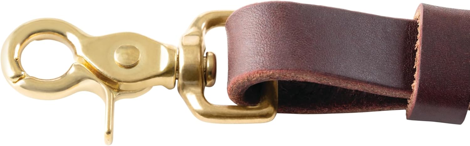 Handcrafted from durable, weather resistant Hermann oak Russet harness leather, these reins feature 3/4" wide burgundy latigo leather ends. A special Weaver rounding technique gives this rein a smooth, uniform center that feels great in your hands. Non-rust solid brass scissor snap and Conway adjustments. Measures 3/4" x 8'.