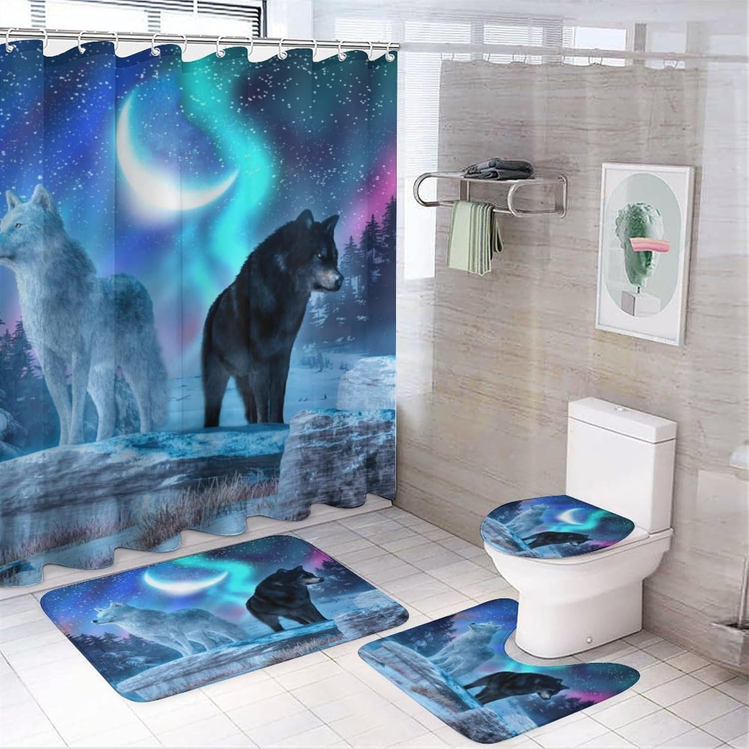 Material DescriptionCoral velvet + waterproof oxford fabric (shower curtain)AccessoriesShower curtain + floor mat + long mat + toilet seat (with 12 C-shaped plastic hooks)Shower Curtain: 72 "W x 72 "L,Mat: 14 "W x 17.3 "L,Floor Mat:17.5 "W x 29.1 "L,Toilet Mat: 13.4 "W x 17.7 "LProduct PerformanceMaterials Of Choice: This brebasf shower curtain 4-piece set is made of coral velvet + waterproof oxford fabric,the fabric is soft and delicate,skin-friendly and comfortable,good touch.Higher Quality: This coral velvet floor mat is super absorbent,non-slip.Easy To Clean: It's very easy to clean and maintain,usually cleaning just need a vacuum cleaner to absorb the dust,easy to store and easy to take care of on a daily basis. When not in use,gently roll it up and put it in the corner,long service life.Waterproofing: This shower curtain is made of waterproof oxford fabric,waterproof performance is good,can avoid water spraying to other places in the bathroom.Applicable scenariosSuitable for home bathroom,guest room,bedroom,living room and other places.WashingInstructionsWashable,not machine washable.Special NoteThis size data in the flat under the measurement,due to different measurement methods,the error of 1-2cm within the normalphenomenon.Warm reminderThe picture display effect is for reference only,the final effect in kind shall prevail! Due to production batches,machinery andequipment and other objective factors,it is difficult to avoid or there will be a small color difference,location and size errors,such asthe above problems are normal phenomena,will not be included in the scope of after-sales processing.