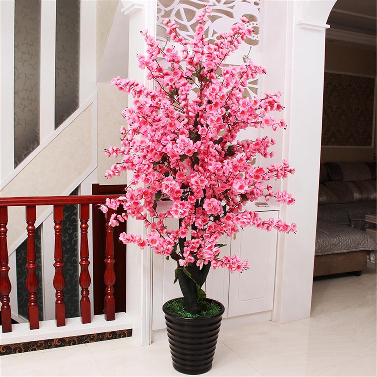 Do you want to have a beautiful artificial perfect tree?Magnificent look for any room or space. You never have to trim it, water or clean up the leaves so its easy maintenance. The flexible steel wire within the flowers allows you to easily adjust their shape to your liking.Gorgeous silk material makes it hard to believe this is artificial.No maintenance required, simply sit back and enjoy the beauty.Full bouquetThe colors are bright, the flowers are full, the flowers are branched, and the color transition is natural.Firm baseIt is composed of multiple steel bars and screws, which are stable and not easy to tear down.Easy to installThe base has been fixed to the main pole. You can decorate your garden, home, restaurant, theme party, hotel, etc.Solid wood interfaceThe artificial flower is made of solid wood material, and its look and feel provide a realistic look.SPECIFICATION:Name: Artificial Tree Flowers Home Decor SetMaterial: real trees + silk flowersColor: pink;redAplicable Scene: Wedding Scene, Shopping Mall, Ktv, Qing Bar, Home, Garden, Square, Park And Other DecorationsPackage includes:cherry blossom decor: 1planter: 1NOTE:Different Monitors Or The Intensity Of The Light, The Picture May Not Reflect The Actual Color Of The Item, So Slight Color Differences Are Normal. Due To Manual Measurement, There May Be 1-2 Cm Error! The Product Size Error Is Within The Normal Range, Because It Is Decorative, It Will Not Affect The Aesthetics.