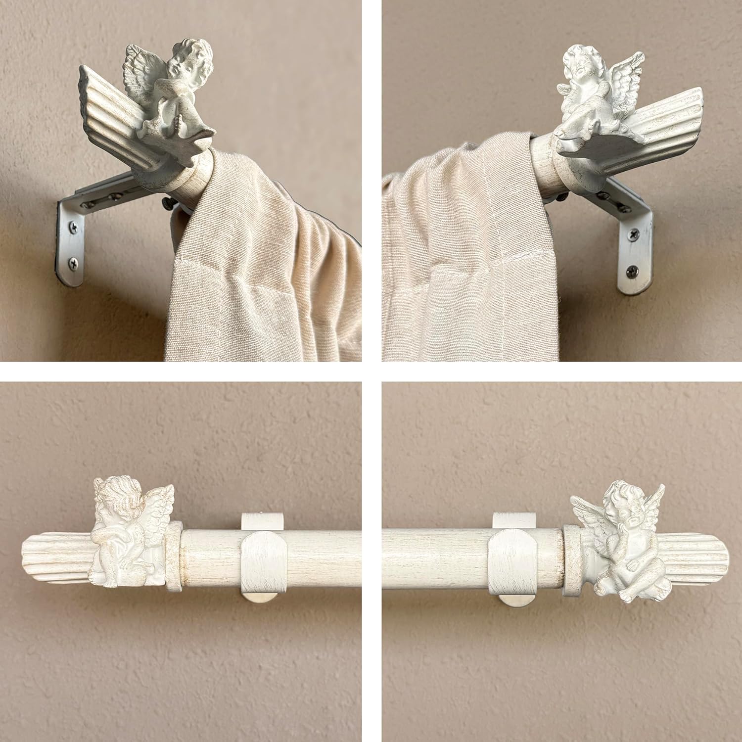 ILAISIHOME 1-1/8 Inch Diameter Curtain Rods with Cherub Finial, Telescoping Single Curtain Rods
