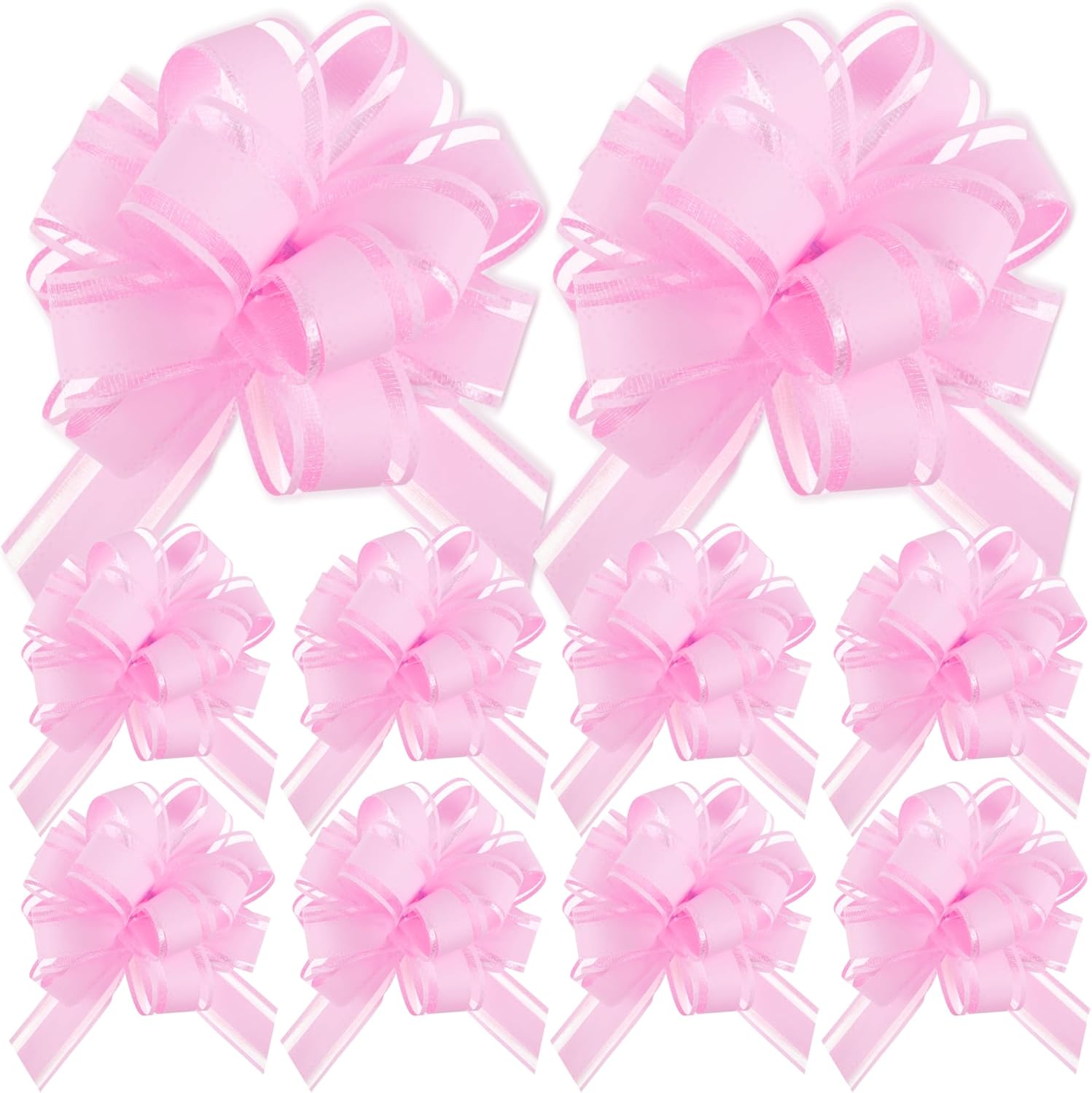Characteristics: - 5 Solid Colors to Choose - Easy to Operate - One Pull, Perfect Bow - Luxurious Ribbon - Huge Time Saver - Strong & Reusable Specification: Quantity: 10 Pieces Material: Yarn and ribbon Size: 4.3 inches/11 cm Colour: Black WARM TIPS: 1. Please check the size before your purchase. 2. Due to different display effects, there may be a certain color difference. The color is subject to the actual product.