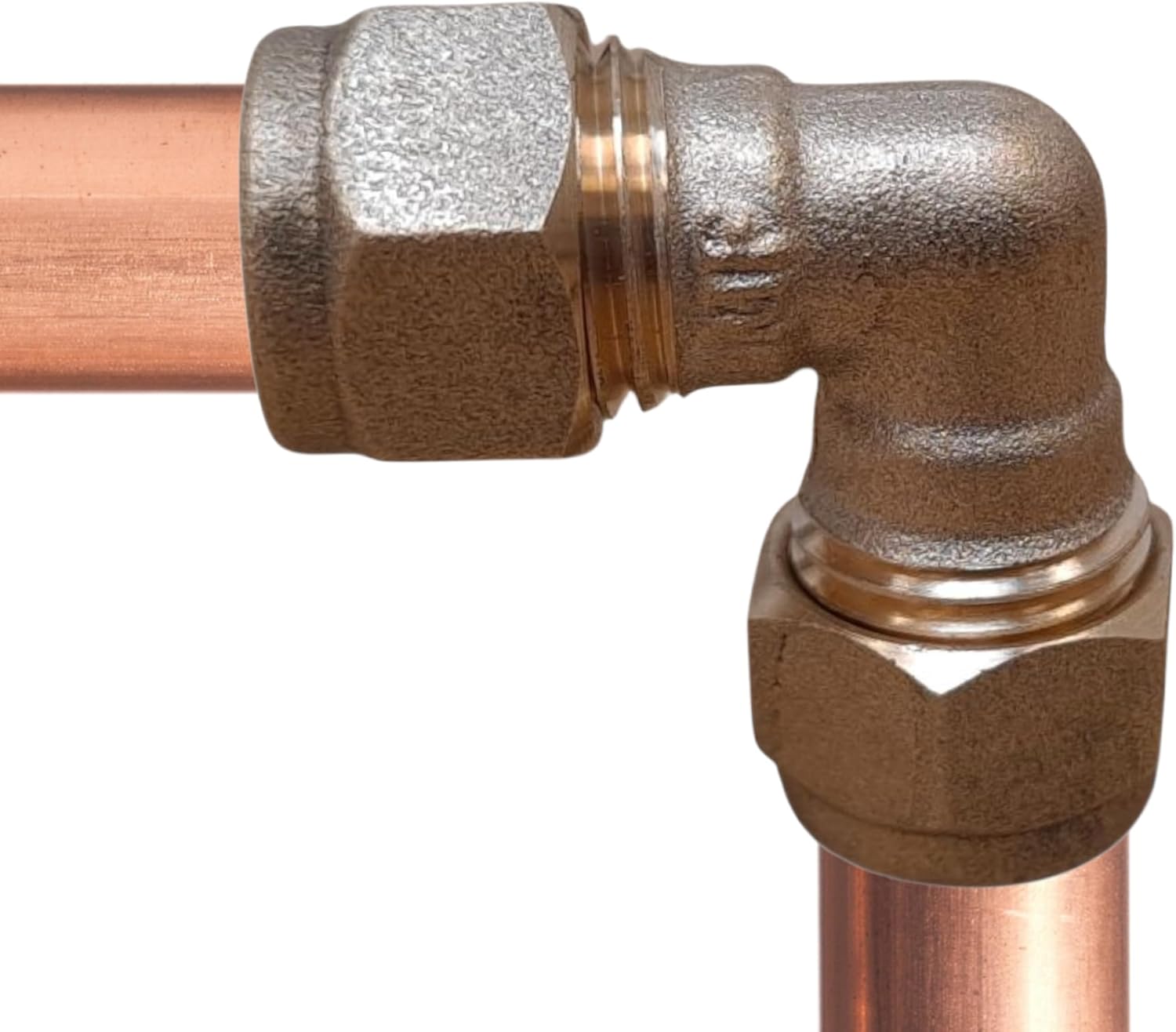 A set of two 10mm brass compression elbows, designed to make clean 90-degree connections in copper plumbing installations. Easy to fit and leak-resistant, these elbows are ideal for kitchen, bathroom, and general pipe routing jobs at home or on-site.
