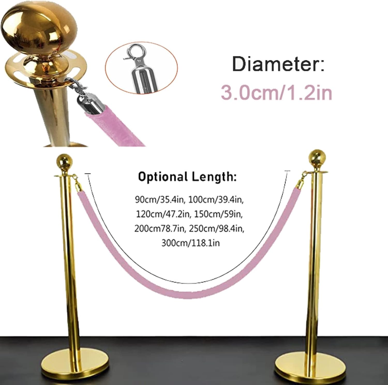 Are you still worried about find some elegant velvet rope barriers for crowd control before the festivals? Our velvet rope looks great with any classic metal post. It is suitable for your VIP sign, VIP photo background area, suitable for cinema, hotel, grand opening, birthday party, entrance, lobby and other areas, the purpose is to keep the crowds under control.● Specifications:1. Material: Golden/Silver metal hooks + Velvet rope2. Size: 2ft/60cm, 3ft/90cm, 3.3ft/100cm, 4ft/120cm, 4.9ft/150cm, 5ft/155cm, 6ft/185cm, 7ft/215cm, 8ft/245cm, 9ft/274cm and 10ft/305cm. Other sizes can be customized. You can connect customer service for help.3. Thickness: 3.0cm/ 1.2in.4. Color: Pink-Gold hook , Pink-Silver hook5. Quantity: 2 Piece.● Features:1. The rope body is filled with foam cores and covered with soft velvet to form a sturdy rope.2. Designed to configure with any stanchion post and keeps crowds orderly and in line with style.3. Great for crowd control at Red Carpet/ Filmroom/ Wedding/ Movie Theater/ On VIP Stanchions/Hotel Celebration and so on.● Package Contents:- Velvet Barrier Rope x 2 (No Pole!)● Notices:1. The item only includes the ropes, not the post or stanchion!2. Due to different measurement methods, the product will have an error of 1-2cm. Hope you can understand!3. Light photography and different display may cause the color of the objects in the photo to be a little different from the real ones. Please refer to the actual product.